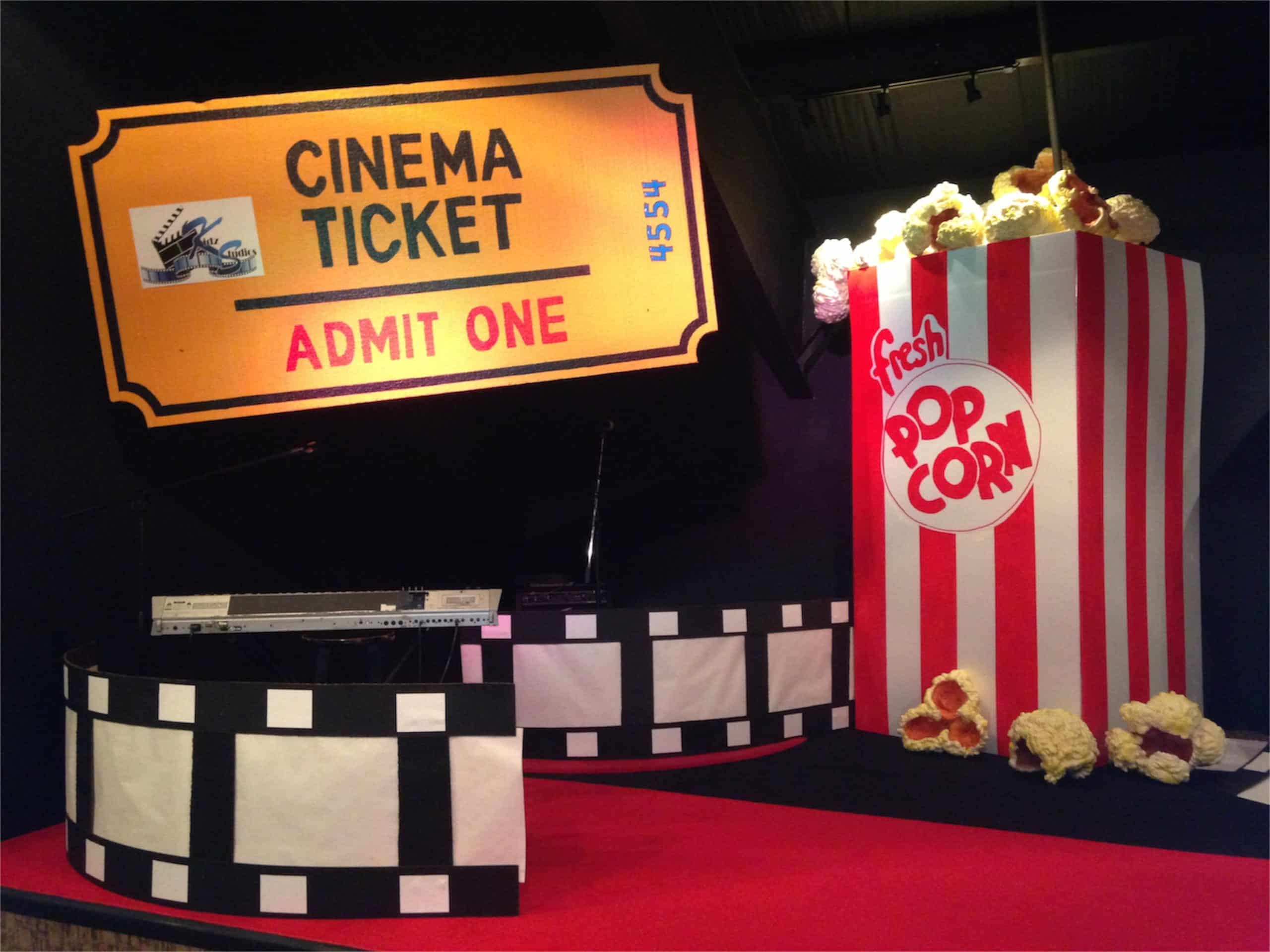 • At the Movies – Cinema experience set with crushed velvet curtains and rear projection screens