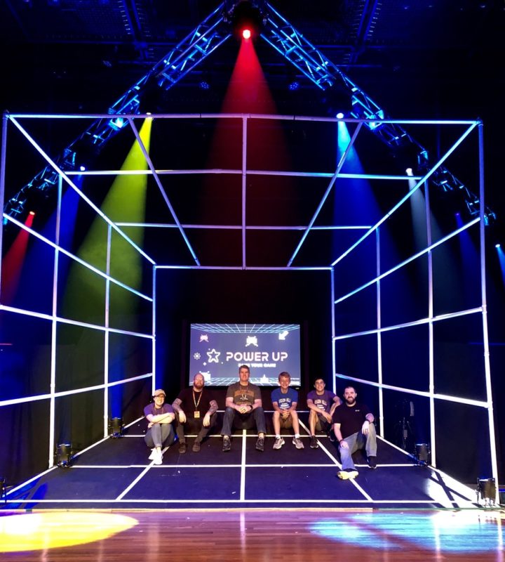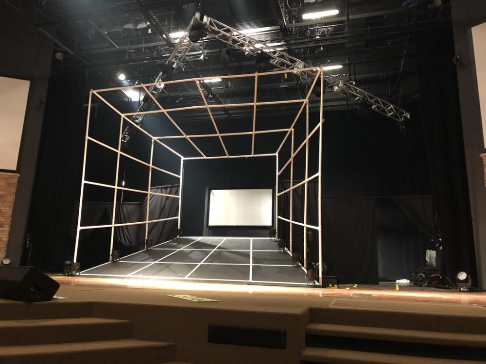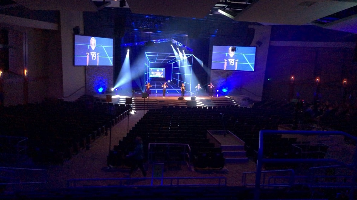 The idea was to create a portal that took the actors from the video screen to live on the stage. The concept was part of the Orange Conference designs.