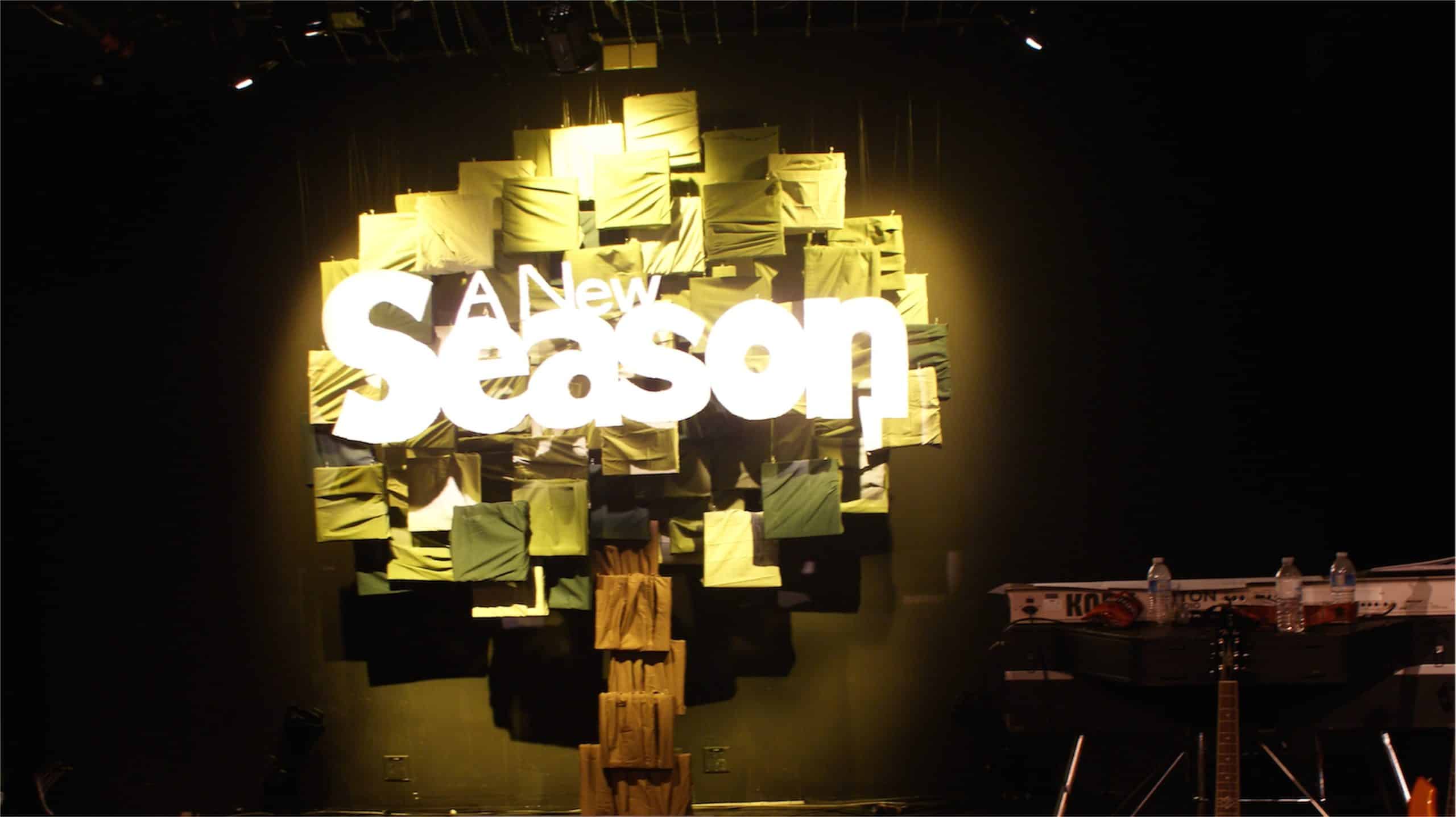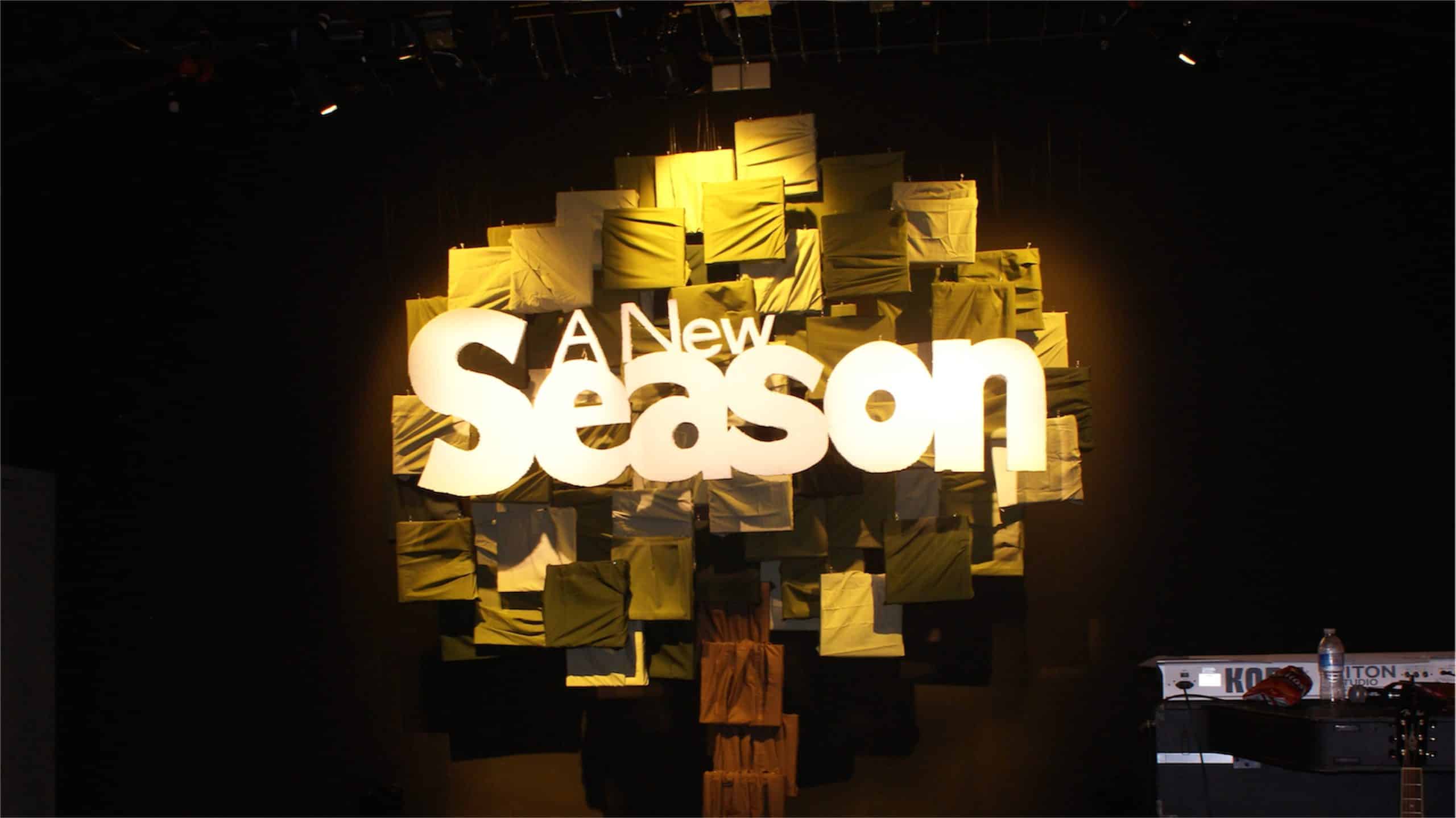 They added the words “A New Season” – crafted from a two-inch thick  4×8′ sheet of foam. Then they hung it in front.