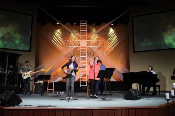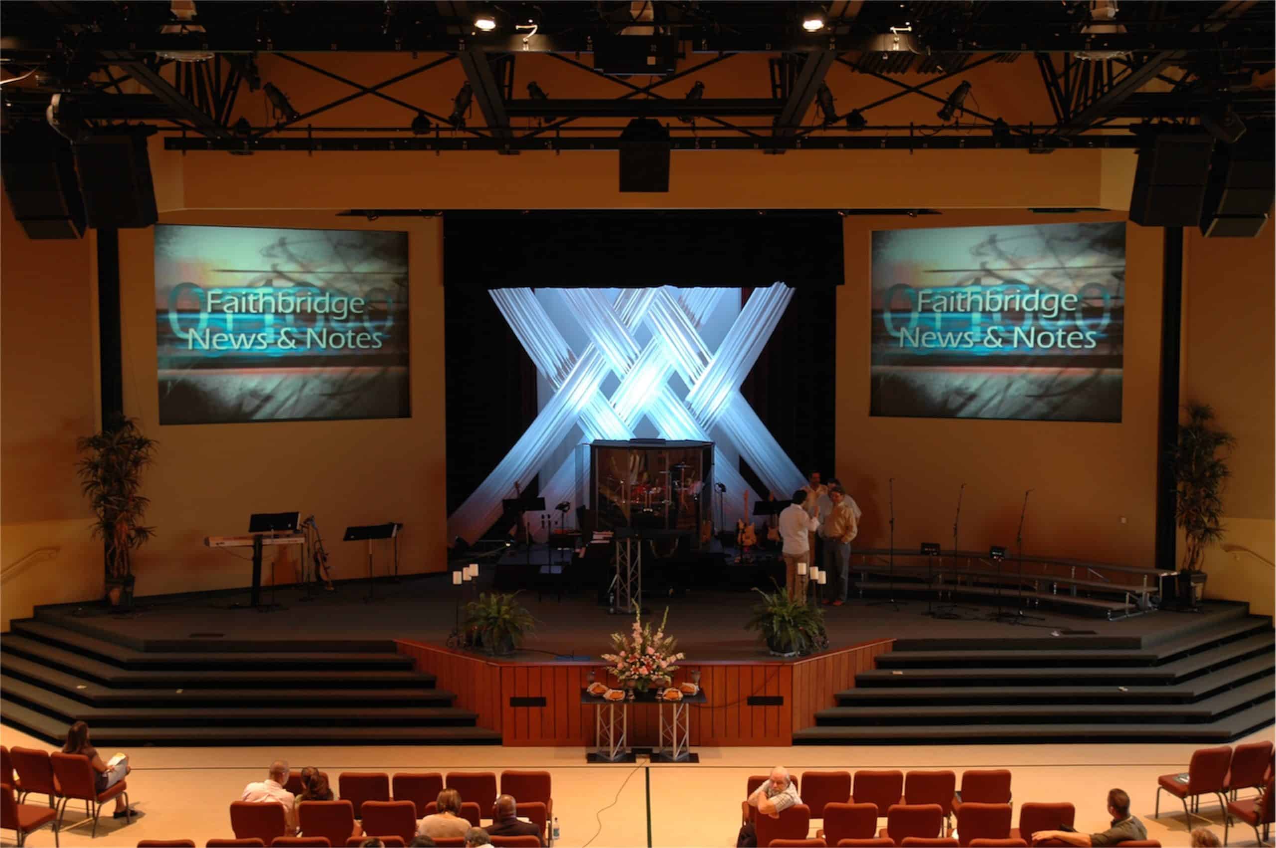 Thanks John, I hope you don’t mind but I used the weaves in the back ground I loved the look of it. I had to change out stage from Easter to Mothers Day and when I saw this it just yelled out Yes! it was perfect. Unfortunately we are a small church under 250 people and our walls under our 2600×400 pixel monitors is only 8.5 feet by 10 ft to work with so fabric was not expensive at all in the local stores I ende up only needing 30 yards with some left over. It looks great. What we had to work with was a wooden structure of 4 boards nailed together with stabilizing legs screwed into th platform floor to keep sturdy and I used my good ole staple gun and gathered 6 – 10ft strips just like you have and filled tight on the ends and gave it a nice look. Now instead of one huge one like
