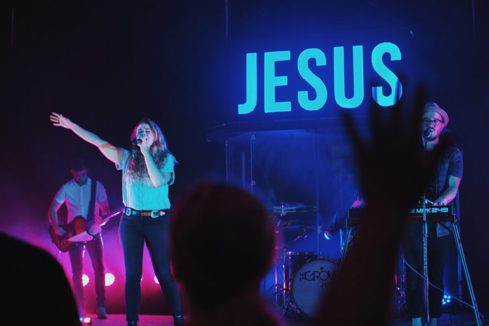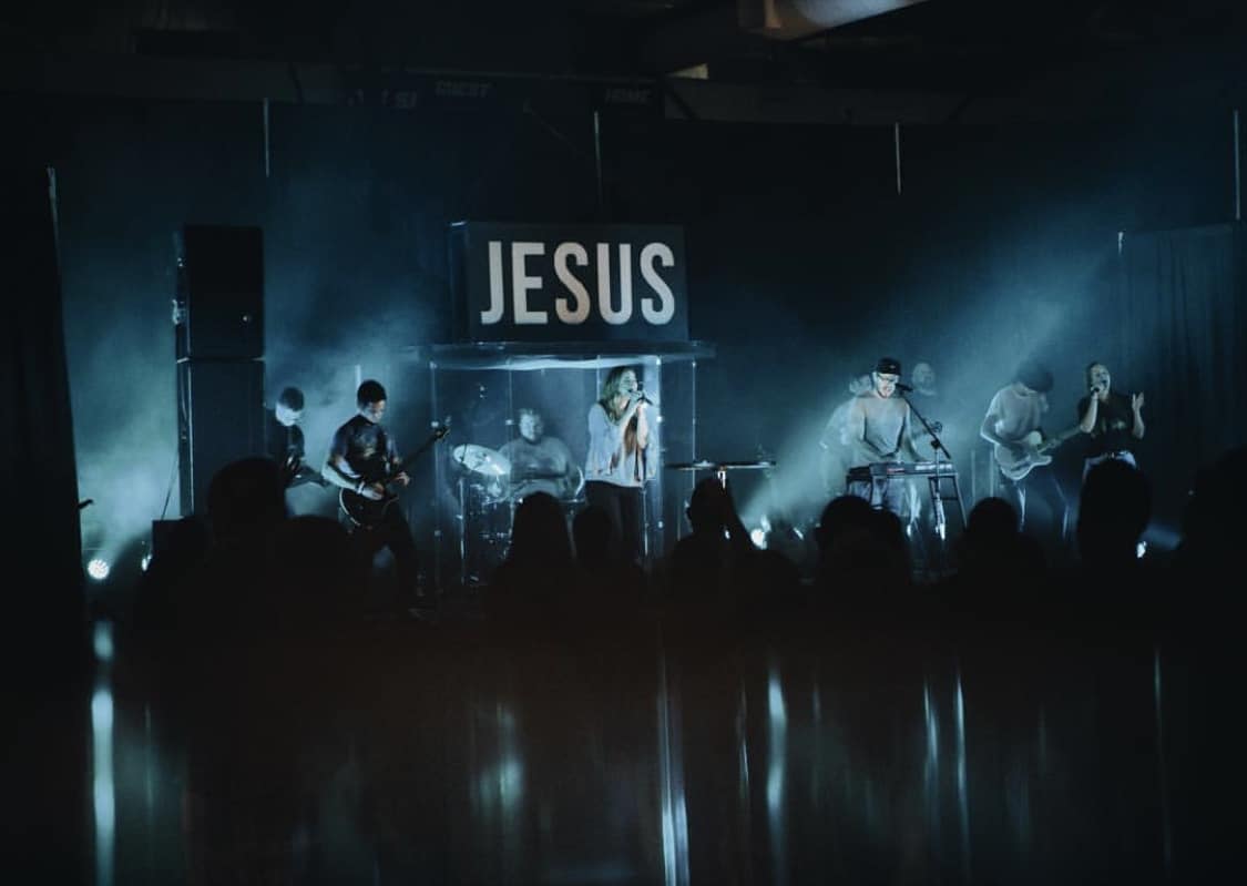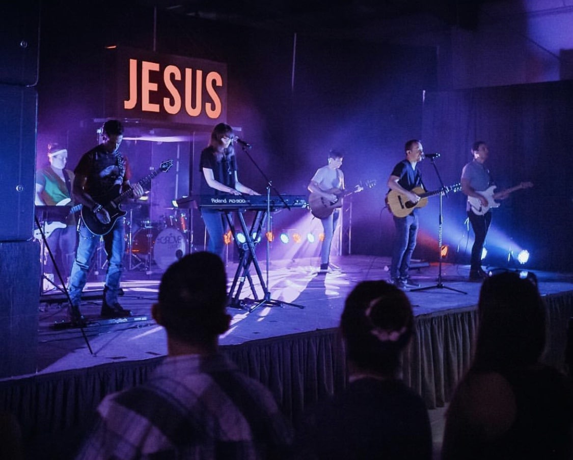 The Grove is a portable church that meets in a YMCA gym. The Jesus sign was proposed and budgeted for under $300.