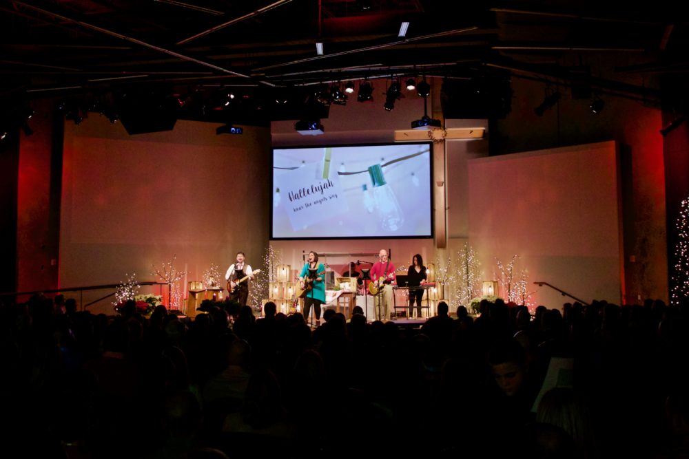 For Advent they did a non-traditional Christmas tree design made with crates and bare bulbs. They bought the crates used online and hung clear bulbs from each and coupled it all with twinkle trees.