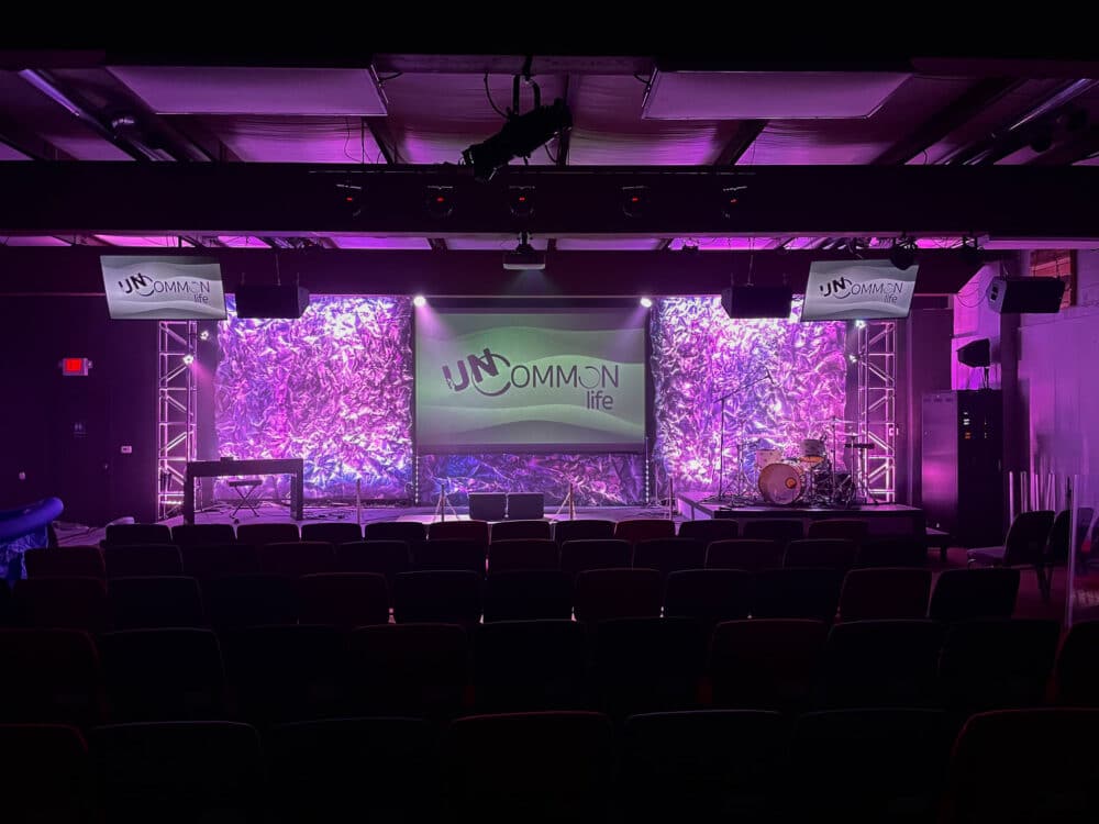 Each side and the middle were all lit by Chauvet Colorbands. There were 3 on top and 3 on bottom of each side.