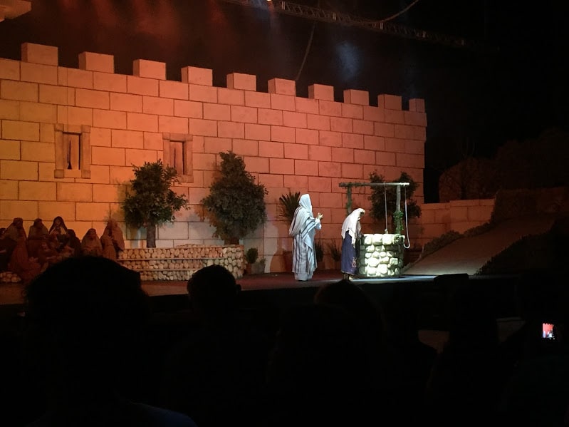 They build a fountain, which was the central point for the conversation between Jesus and Nicodemus, also carved from Styrofoam, which was painted with water-based varnish. .
