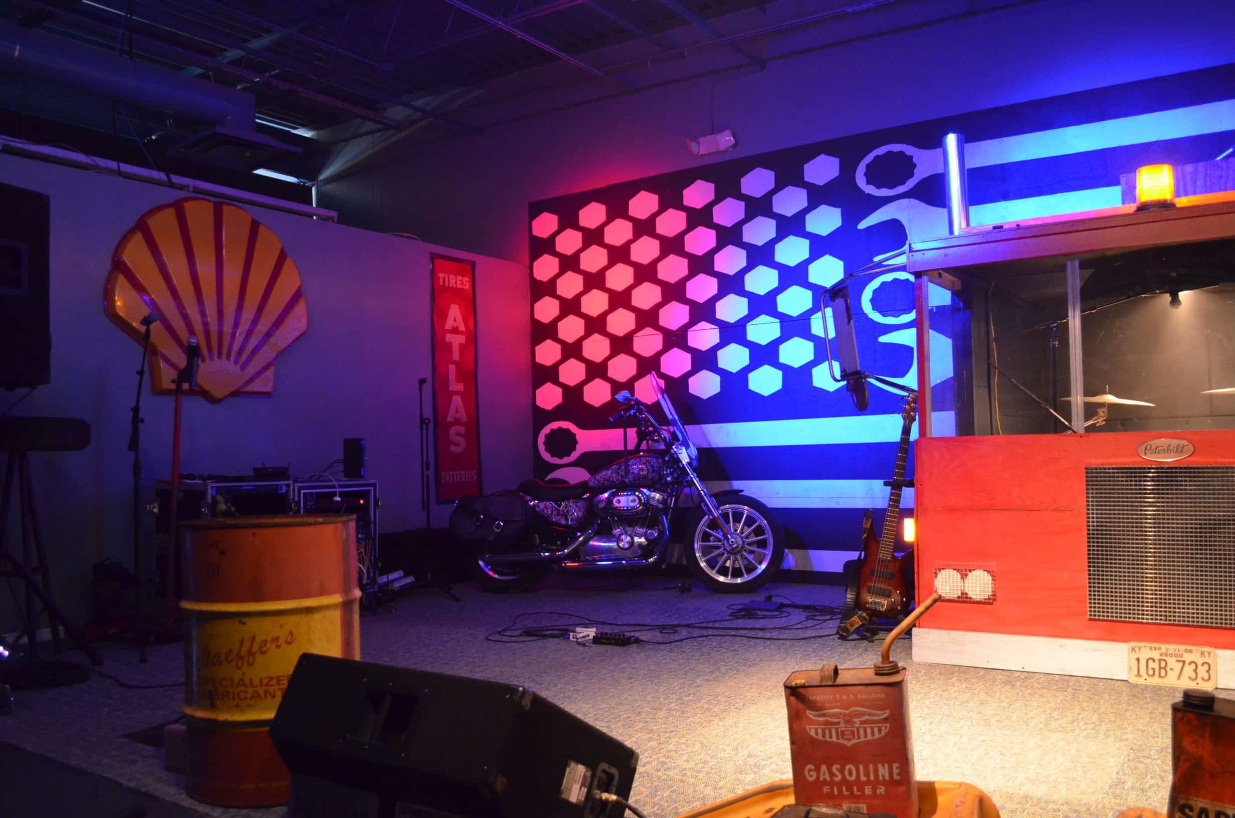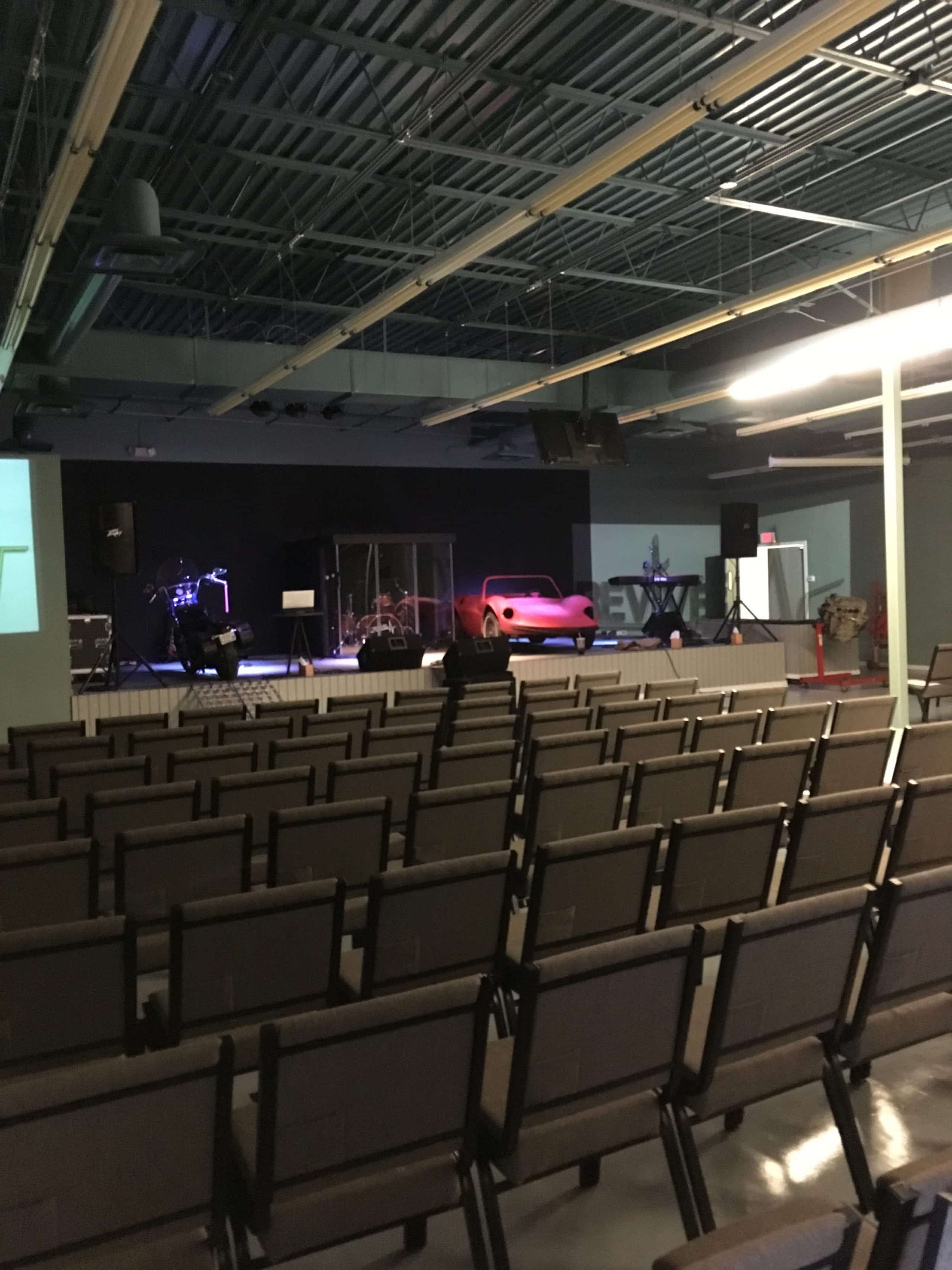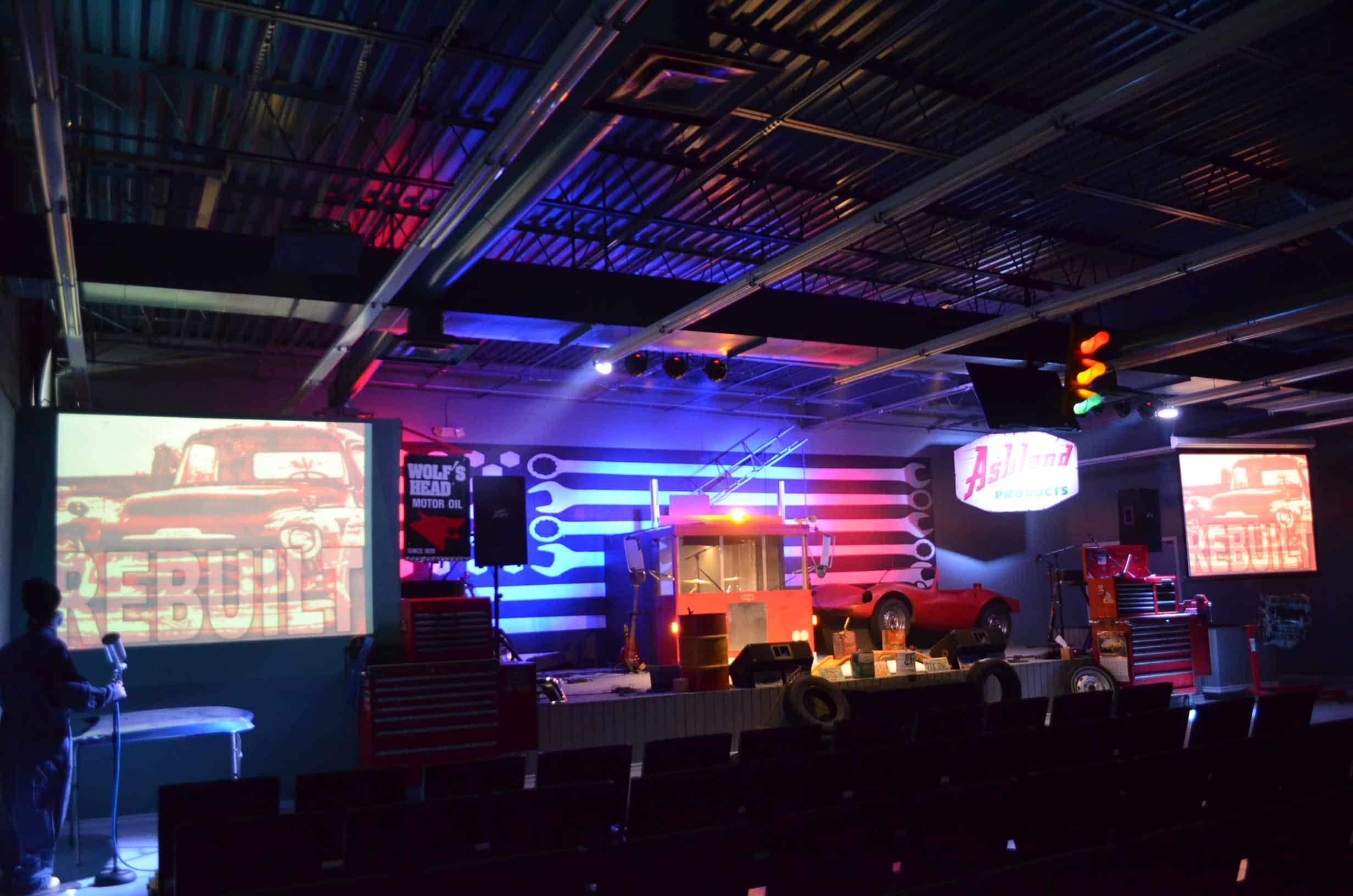 CJ Walters from Revive in Dry Ridge, KY brings us this stage design that looks like a mechanic shop.