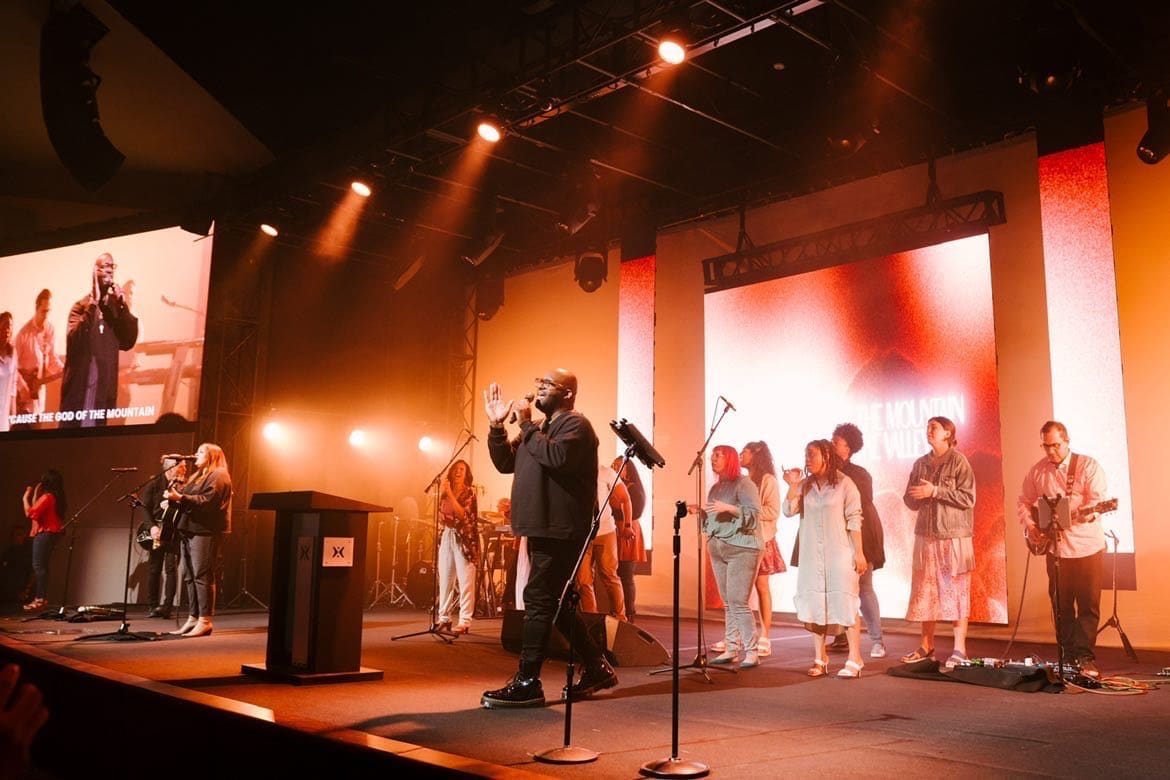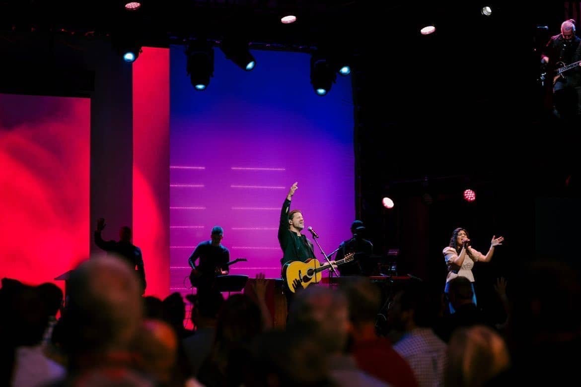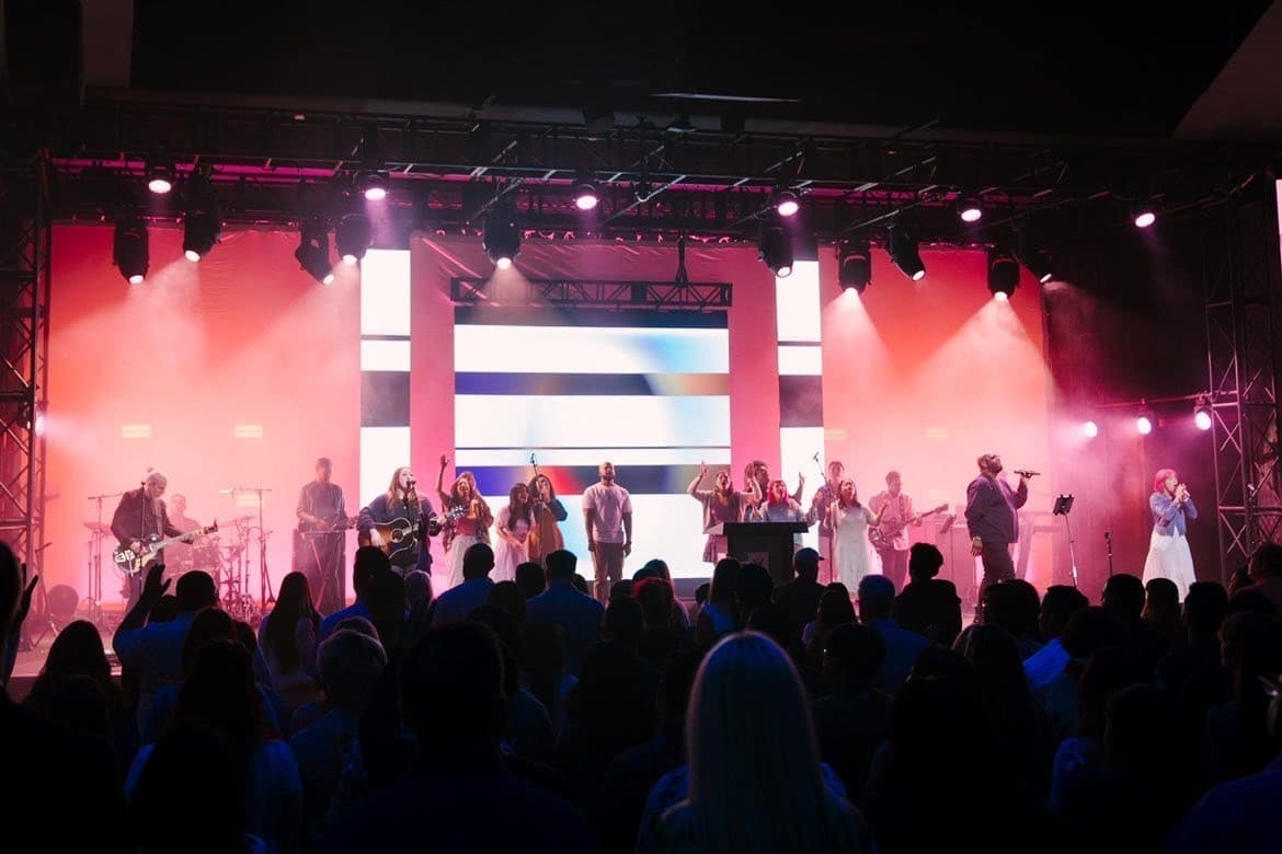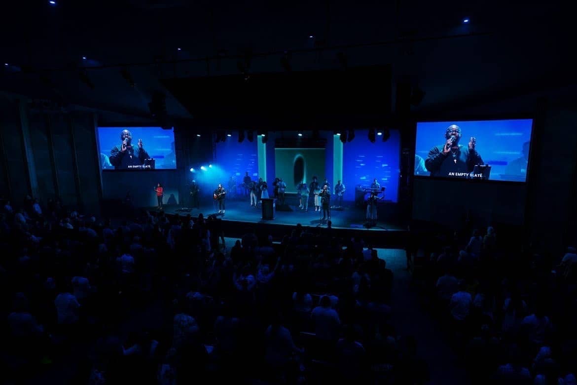 This design involved a 50-foot muslin cyclorama curtain backlit with various fixtures – primarily Chauvet Epix and JDC1 strobes. The LED Walls are Roe CB5 panels.