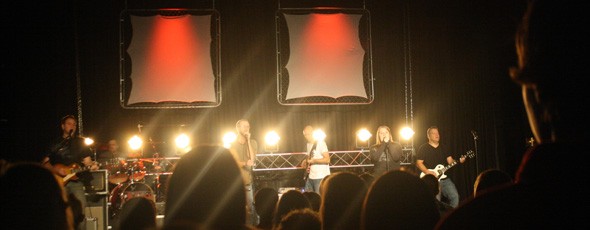 Sometimes simple is best. The Wesleyan Church of Hamburg’s student ministry, The Hub, went with this simple design consisting of scrims, lit trusses, and par cans. They created their own blinders using par cans and really rocked out the place. Check out the pictures and start thinking how a simple rock design could be effective in your situation.