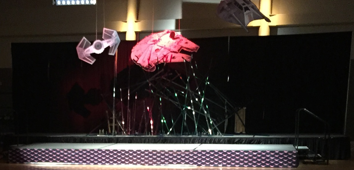 Jason Lurie from Engage Church in Memphis, TN brings us this Star Wars stage complete with Millennium Falcon. To create the light sabers in the center, they made a structure out of fluorescent tube covers. Then the ...