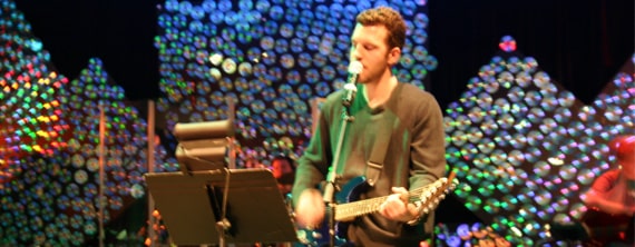 To light the set, Rick used mostly white light, with some blue for darker effect. (Be careful to light at steep angles so you dont blind the audience.)