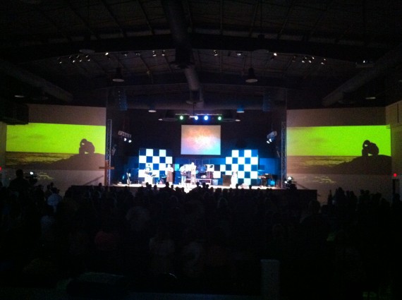 They played videos from Top Gear Director Nigel Simpkiss’ Vimeo page on the large sidescreens during the pre-service to help amp up the car theme.