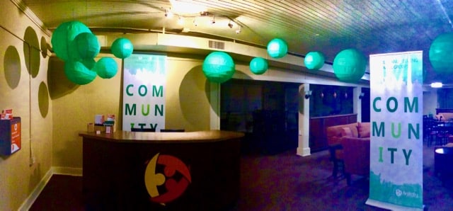 Green lanterns were hung over the Welcome Desk to promote their Small Group signup.
