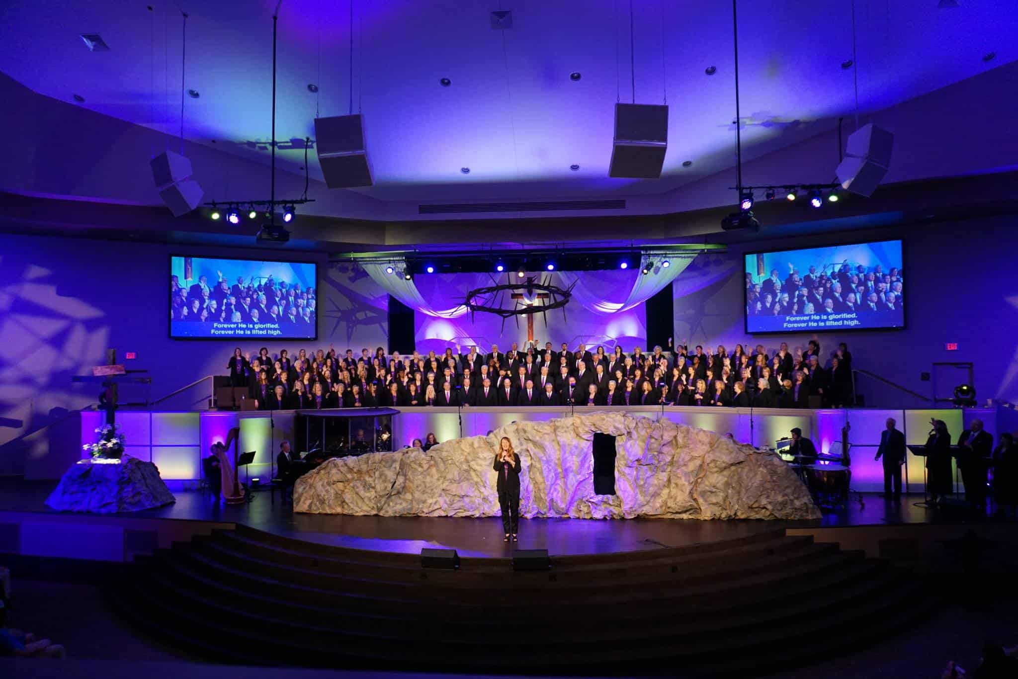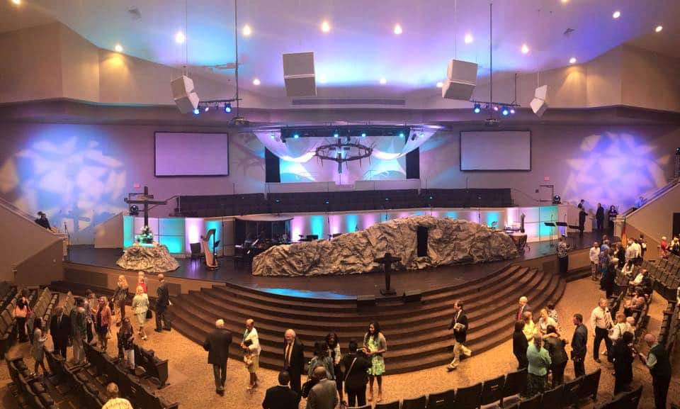 This Easter stage design consisted of 3 main elements: the cross, the crown, and the tomb.