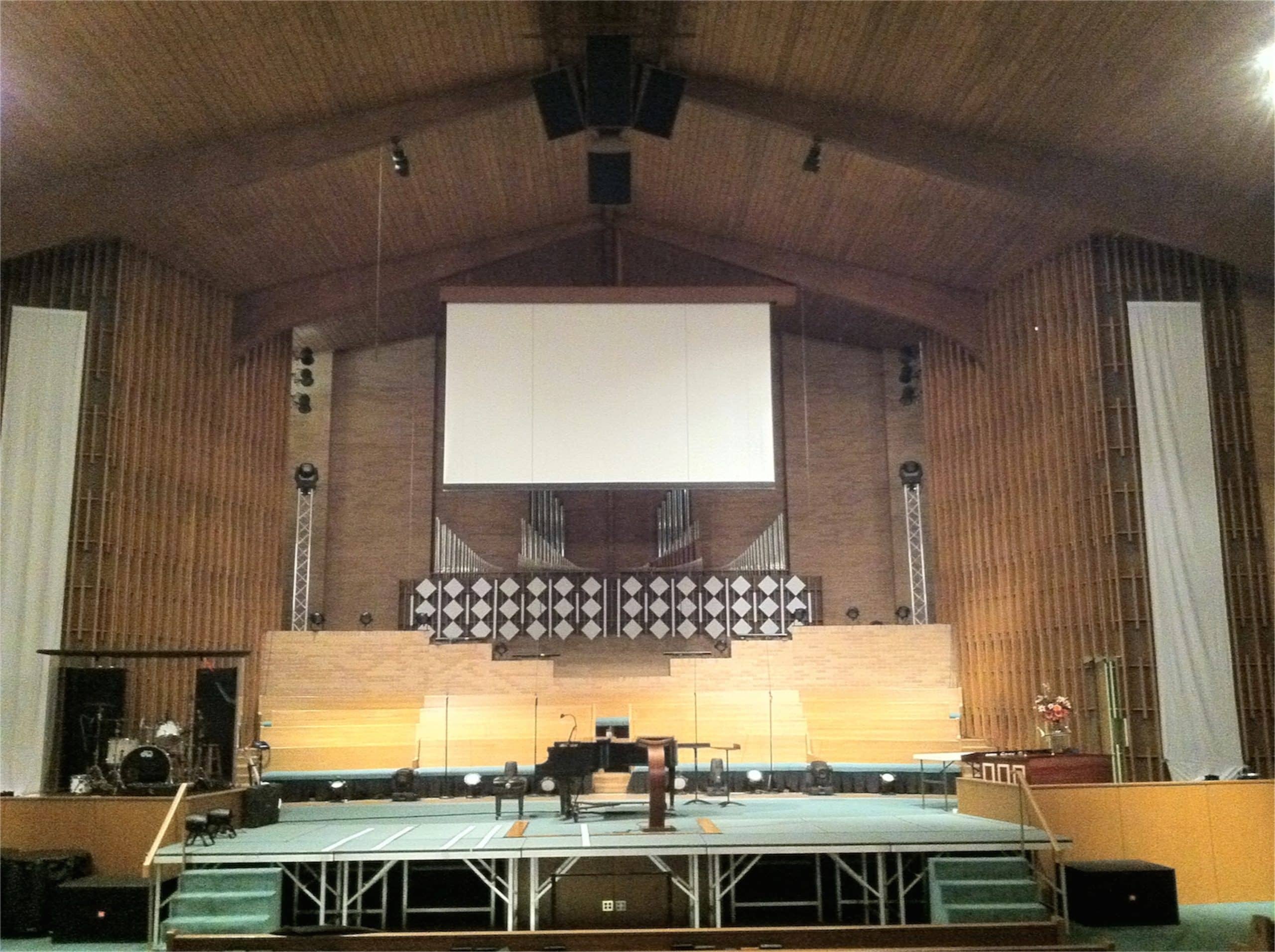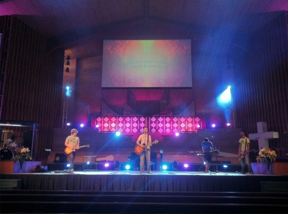 We are using 4 Chauvet colorstrips to light them and an assortment of led pars to fill the rest of the stage with additional elation intelligence. They used an M1 by Jands Vista for control.