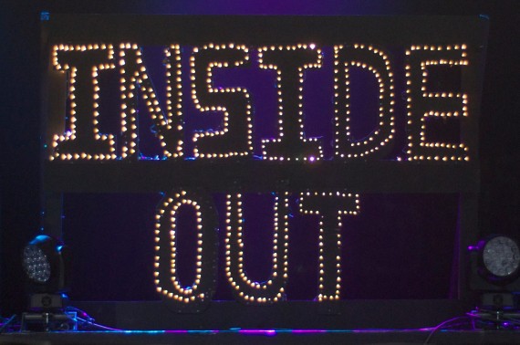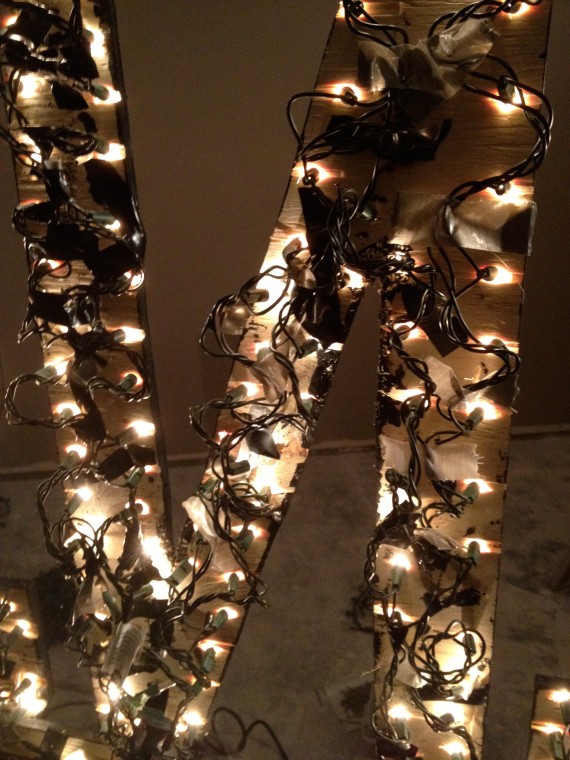Then came the lights. Each letter took about one string of lights and it took about an hour to do “INSIDE.” They taped the lights to the framed letters using electrical tape.