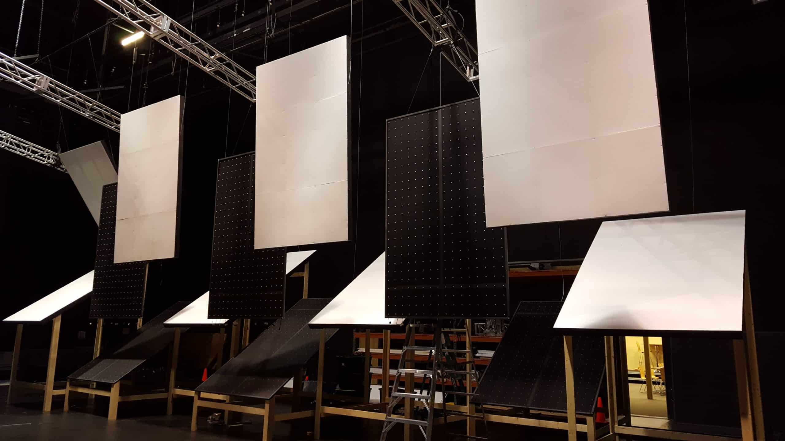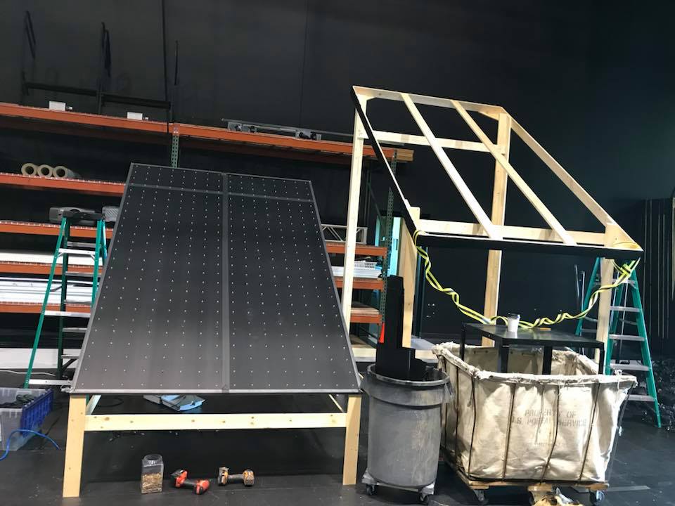From Chris: Our winter 2017-2018 stage design was a fairly intense build with quite a bit of technical complexity. We decided early on that we wanted to build some large scale low resolution LED panels and combine that with projection mapped video to create a very large amount of space to display visual content in a variety of formats. I’ll go through each major element of the set and touch briefly on what it consisted of and how it was constructed.