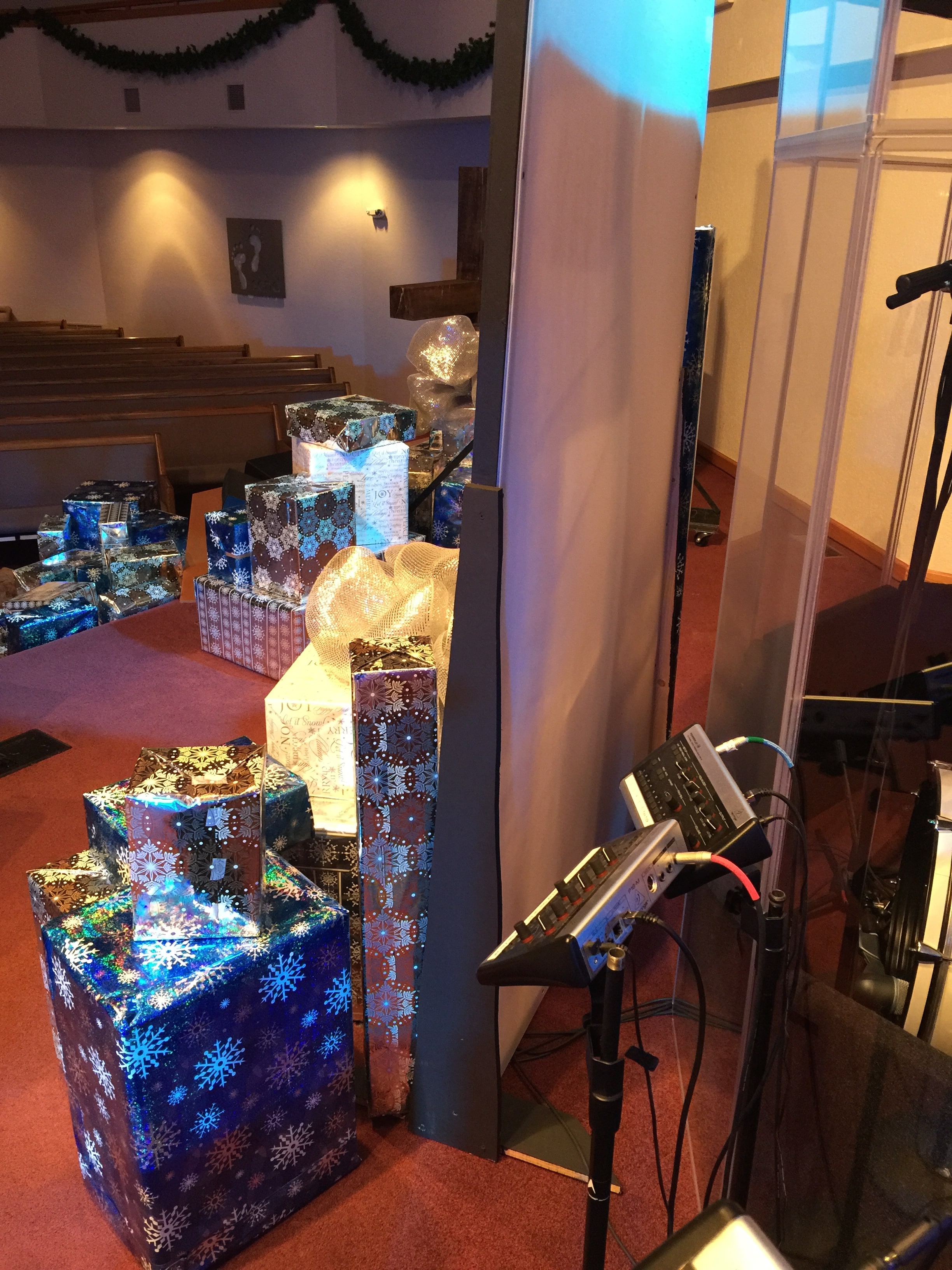 Brock Thornsbrough from North Webster Church of God in North Webster, Indiana brings us this Christmas design filled with gigantic presents.