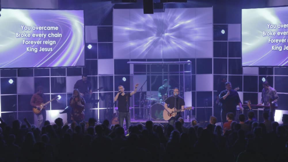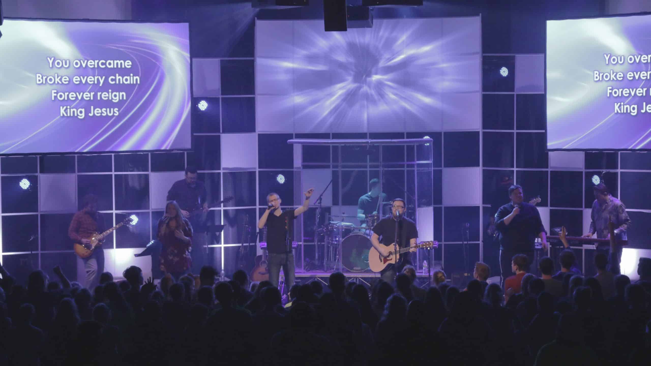 Mark Zuiderveen from Harvest Bible Chapel in Davenport, IA brings us this ceiling grid stage design.