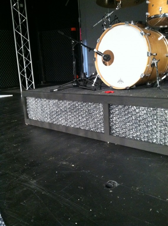 They used bubble wrap to surround the drum riser with small LED lighting to accent.