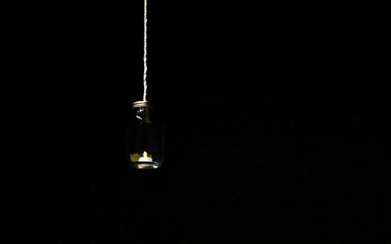 They also bought mason jars, placed and LED tealight candle inside each one, and hung them from their rafters using twine from Walmart.