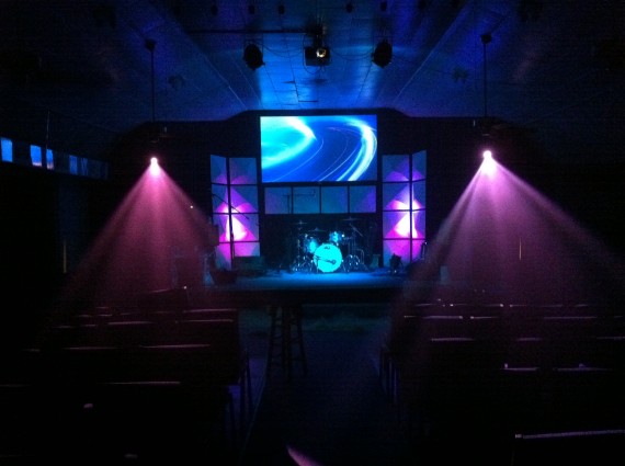 To light the set they used 4 LED Par 64’s and 2 Martin Mac250 Entours. The set, minus the lighting, cost 110 dollars to build.