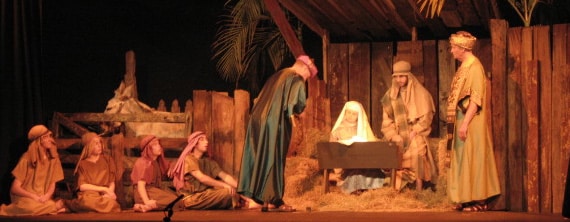 They built this Christmas set with hired black drapes and old weathered timber from a farm. Pretty inexpensive…just took a lot of time and some great lighting!