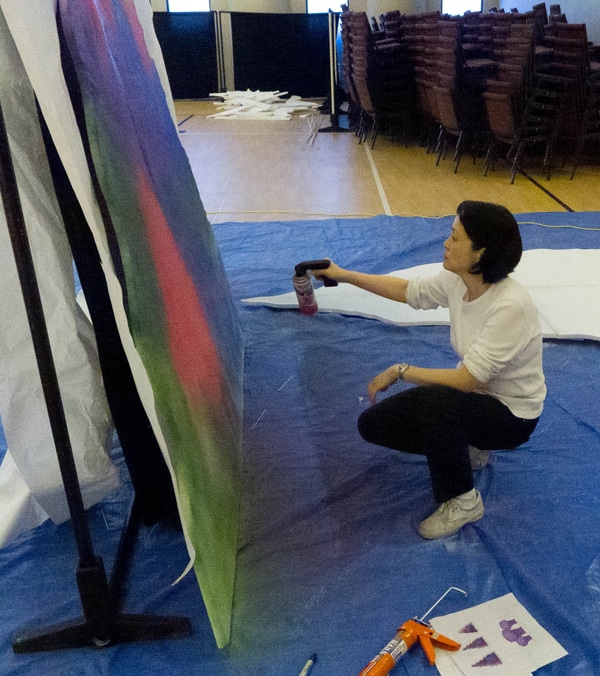 To add a bit of texture to the panels, they used a propane torch to draw swirls into the trees. They spray painted the cracks with white primer, then spray painted them different colors.