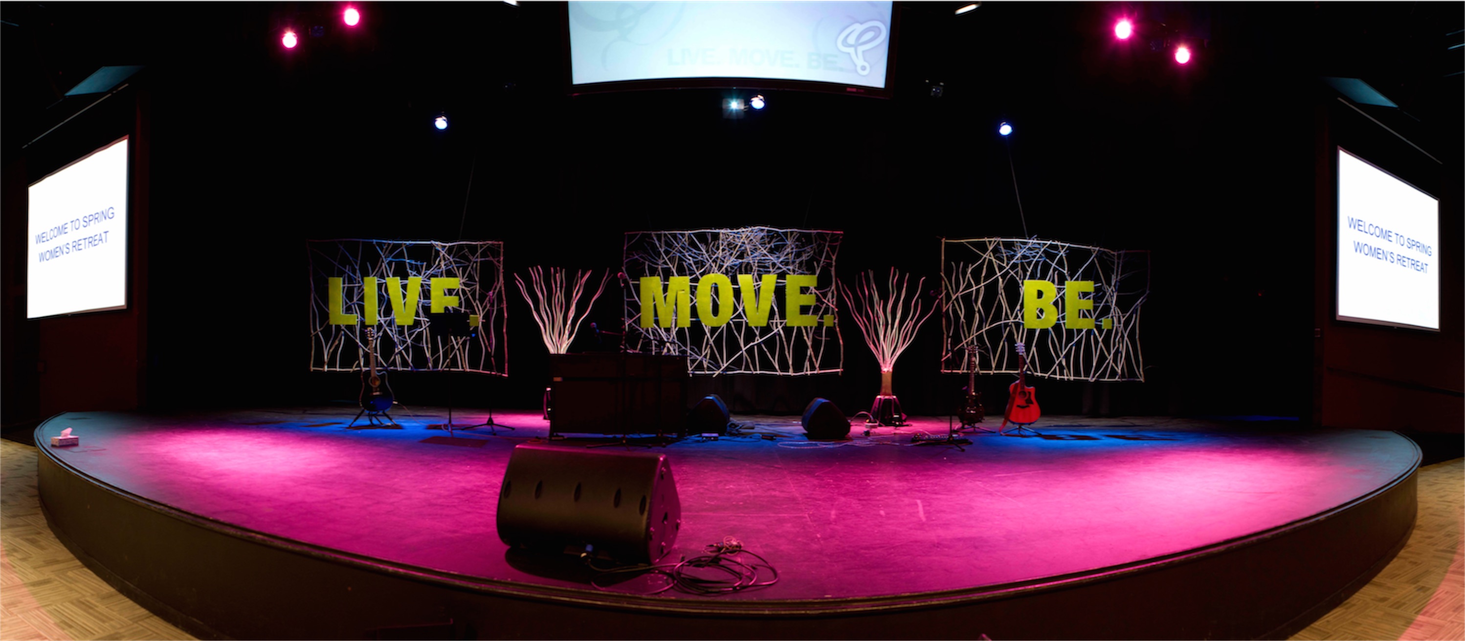 Christopher Law from SpringHill Camps brings us this natury, rustic design for a women’s retreat hosted at their camps in Evart, Michigan.