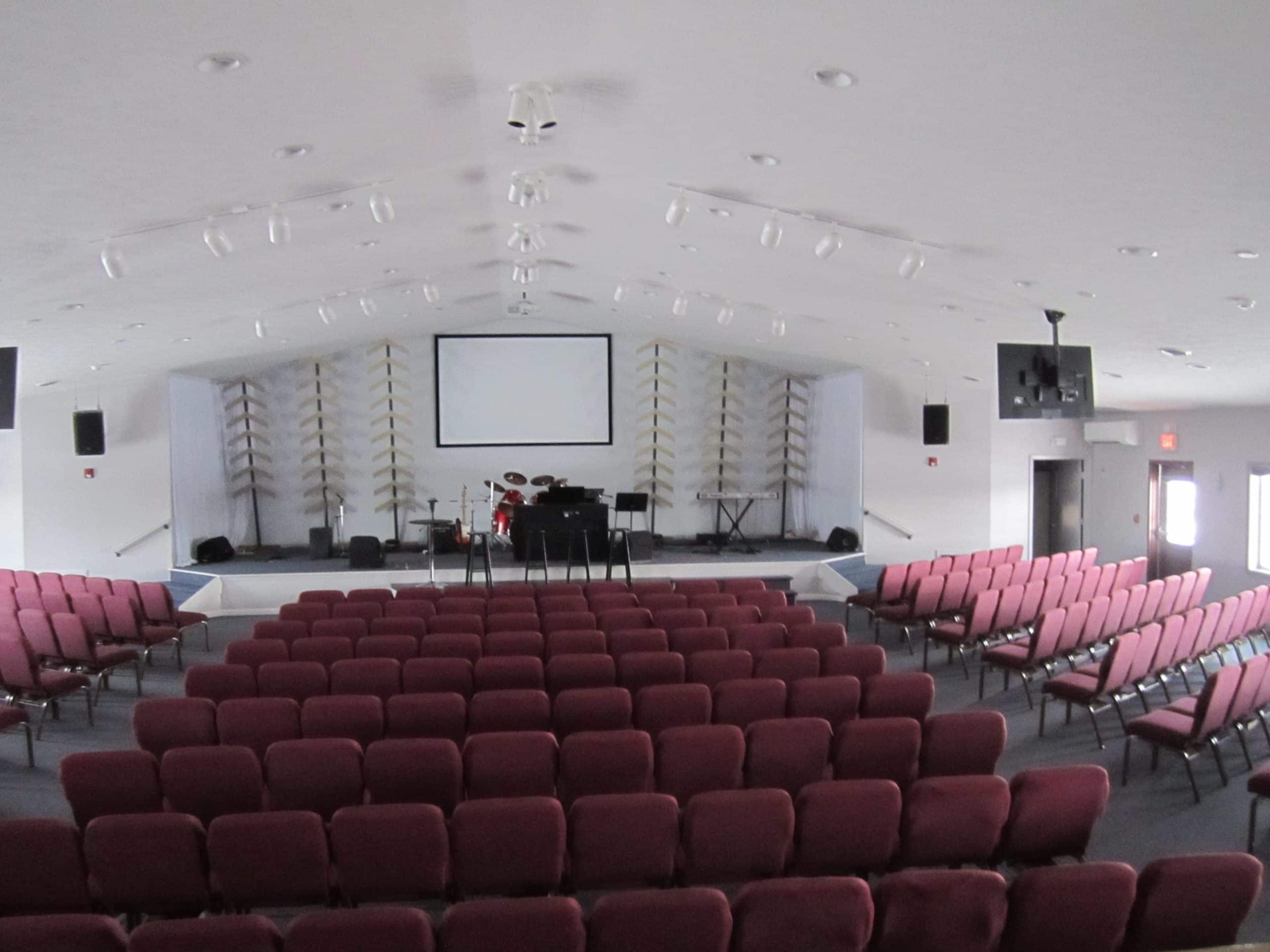 Eyebolts were used on the wall and in the back of the upright. A heavy fishing line was used to lean them away from the wall. The line was less visible than wire.