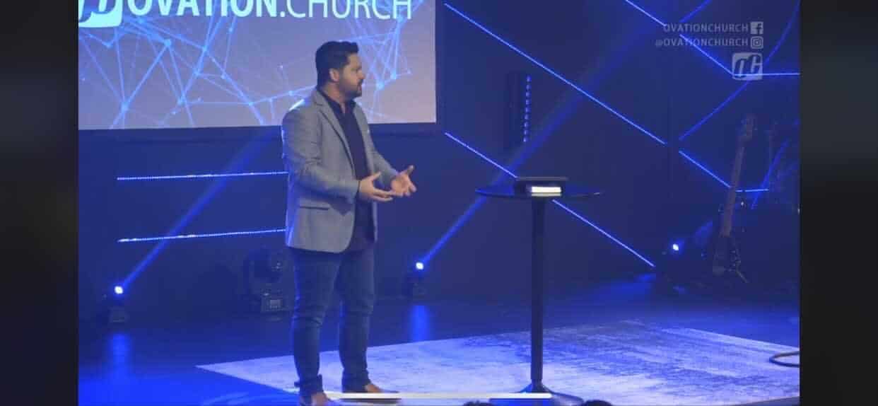 This striking LED tape installation from Ovation Church demonstrates how a relatively simple lighting setup can create dramatic visual impact on a modest budget. The design features vertical strips of RGBW LED tape mounted directly to the back wall of the stage, creating a canvas of light that can shift colors and moods instantly to match any worship moment.