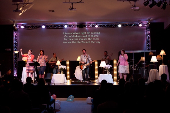 Throughout the service they slowly transitioned the stage to a bright white scene to show the congregation the transition from dark to light.