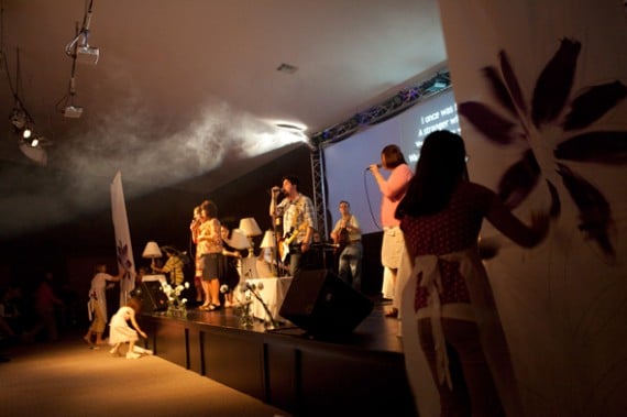 3. @Raphi – The software we use is ProPresenter and then a TripleHead2Go device. If you have any other questions shoot me an email evan.courtney@gmail.com