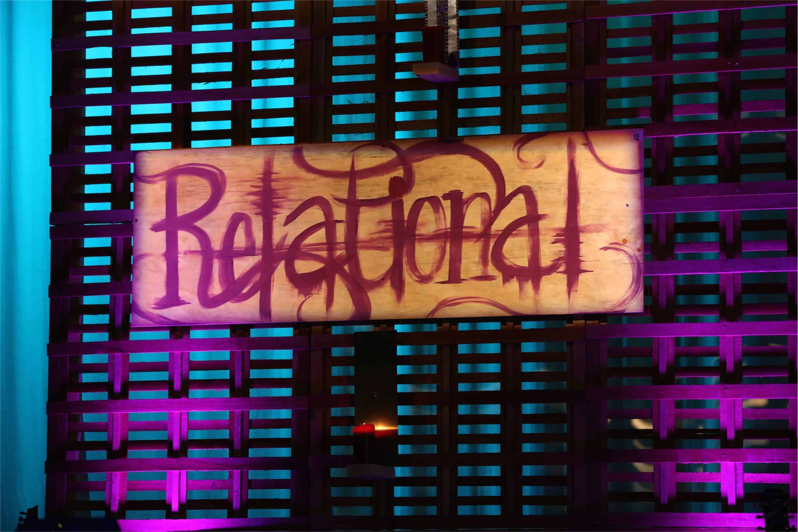 Alex and her team found some interesting wood pallets for $1 a piece. They were quite different than the standard pallet, which she liked, and they were so versatile that she knew they could use them for future projects as well. They bought 40 of them and built a 4 high x 8 wide grid and two stand alone towers that were 1 wide x 8 high. They used 2 x 4s and ¼ inch plywood for assembly and support. Floor LED’s uplit the wall from the front to add dimension.