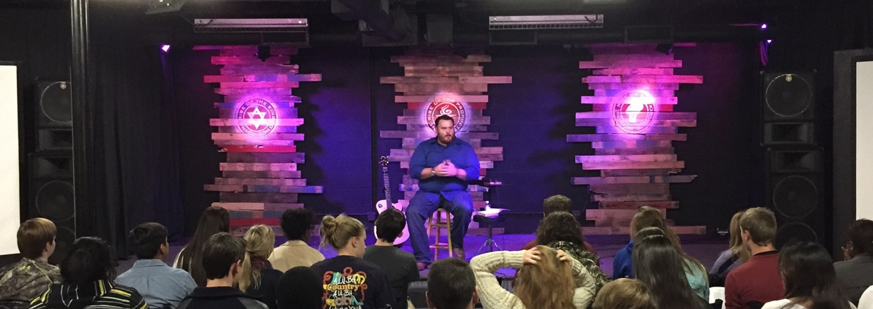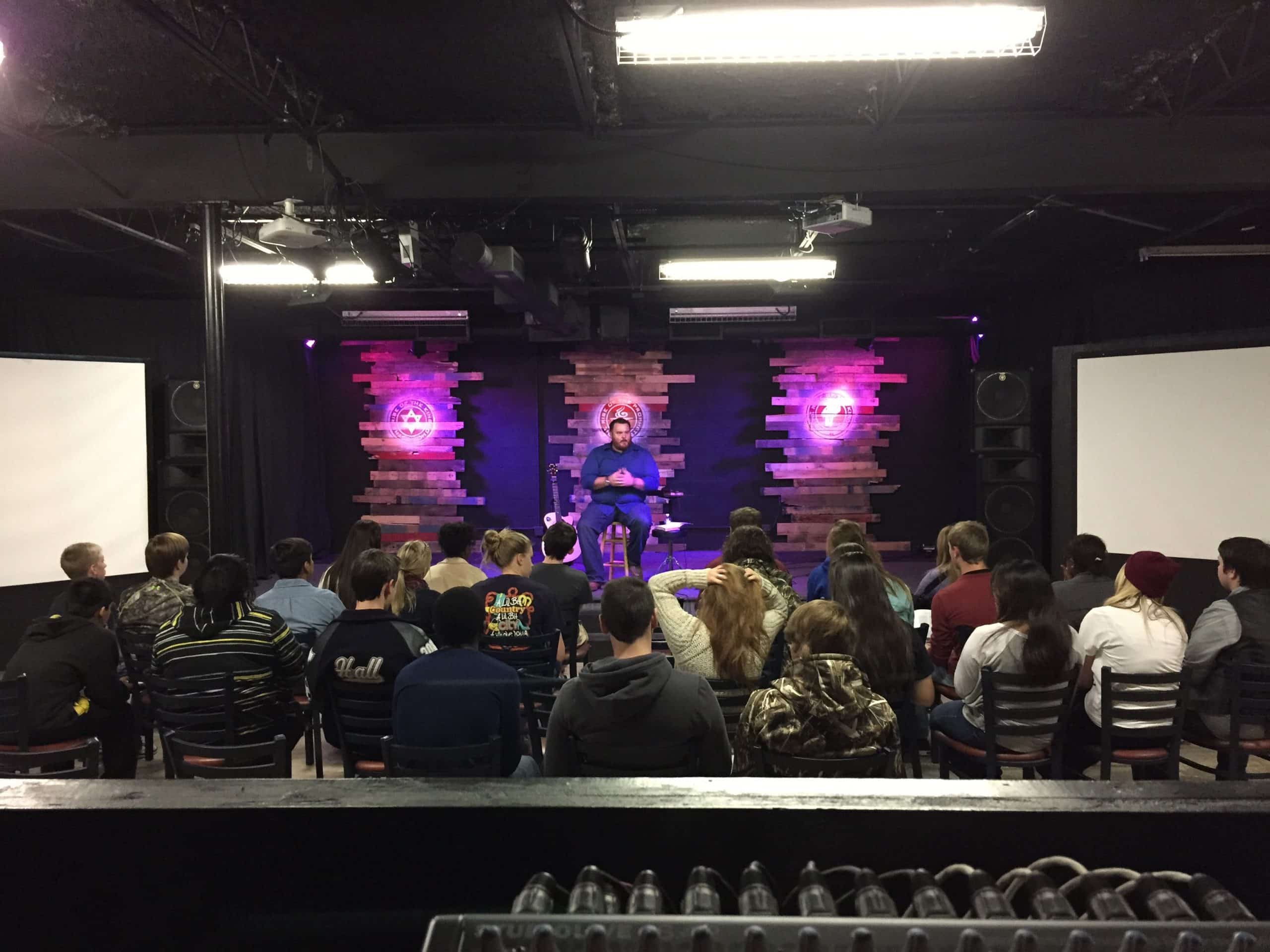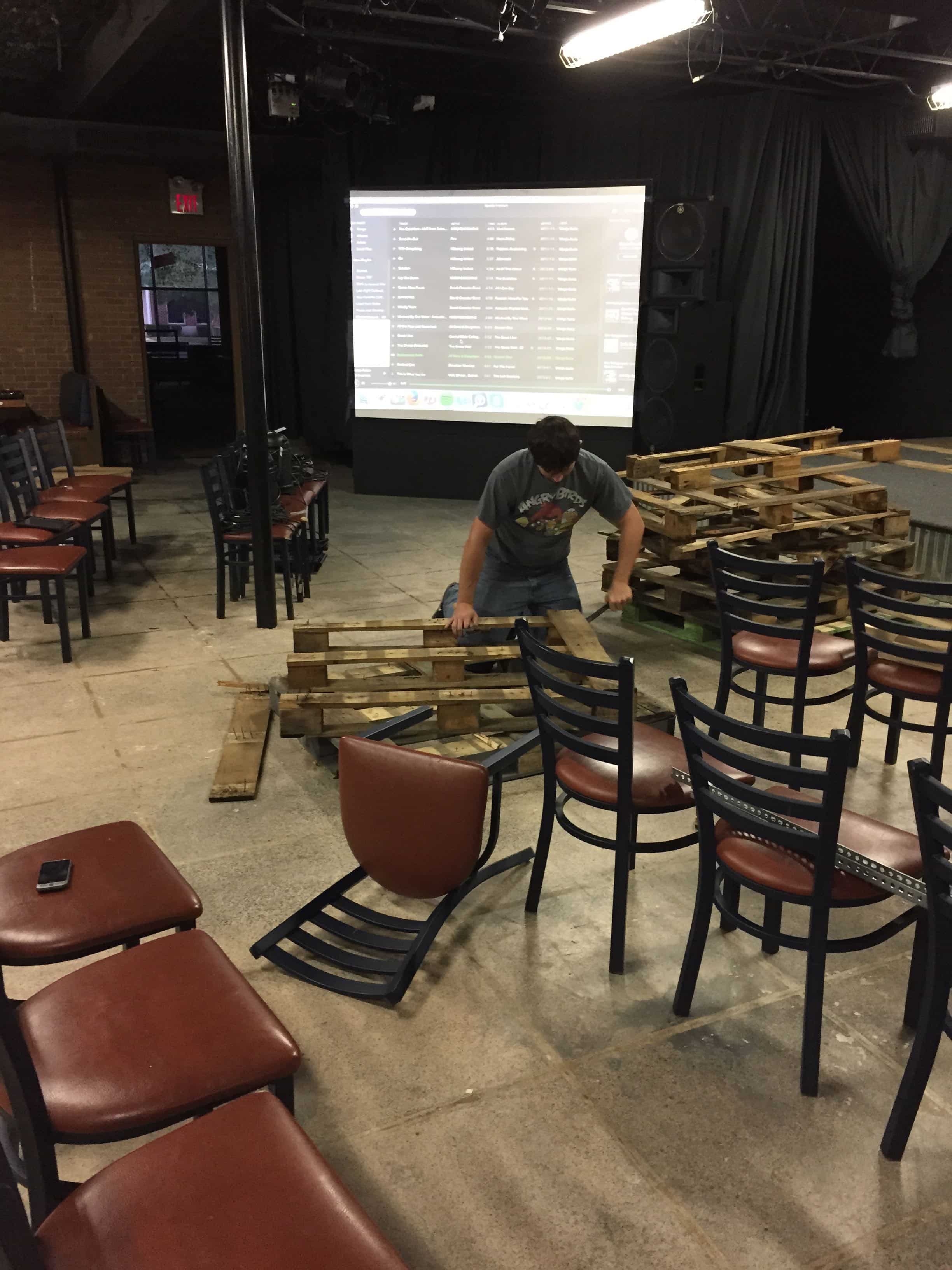 Cody Nethery from Memorial Baptist Church—Ethos Student Ministry in Baytown, Texas brings us this stage design built by four highschoolers and one adult overseeing.