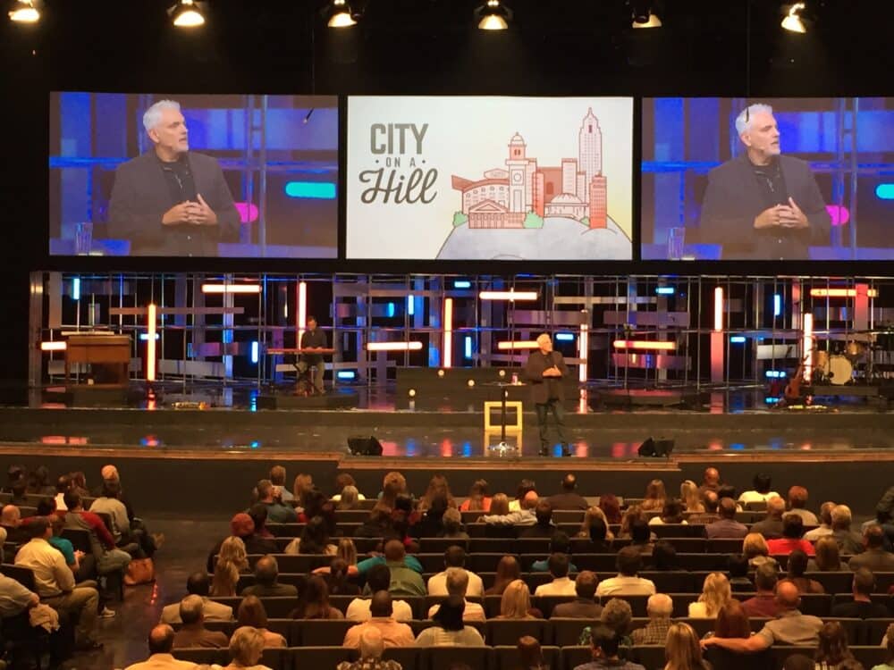 Todd Bougher, helping Healing Place Church in Baton Rouge, LA, brings us this cool stage design with a lot of depth.