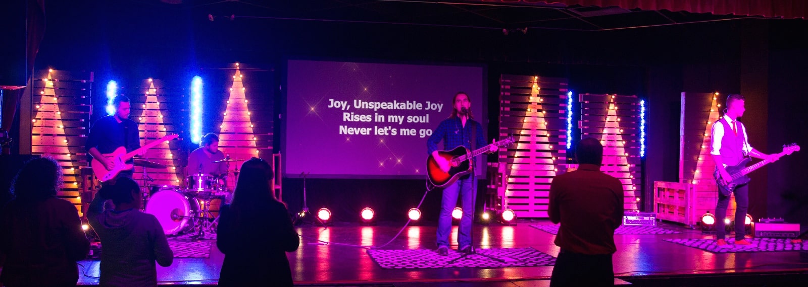 As a portable campus, they needed something that brought the Christmas vibe to their weekend experience but could be rolled out of the High School in a few minutes when they tore down. After seeing several pallet sets on this site, Jeremy decided that was the look he wanted to go for.