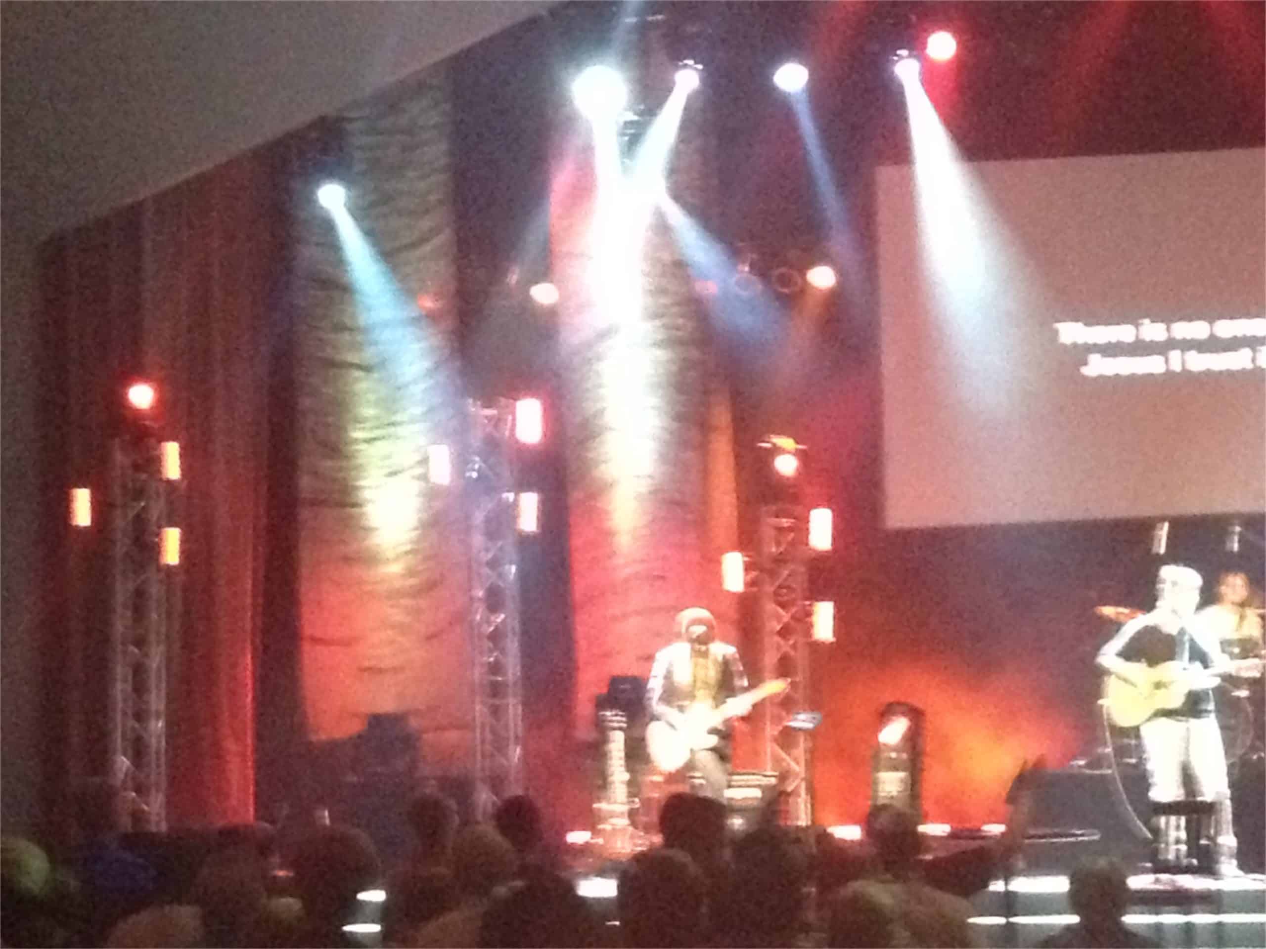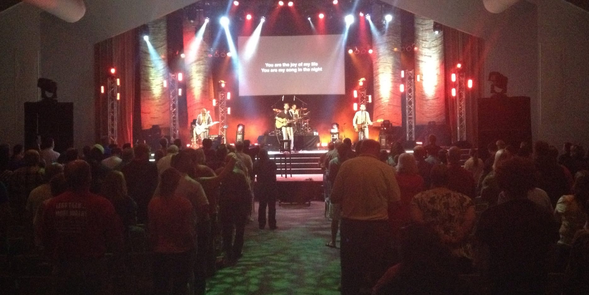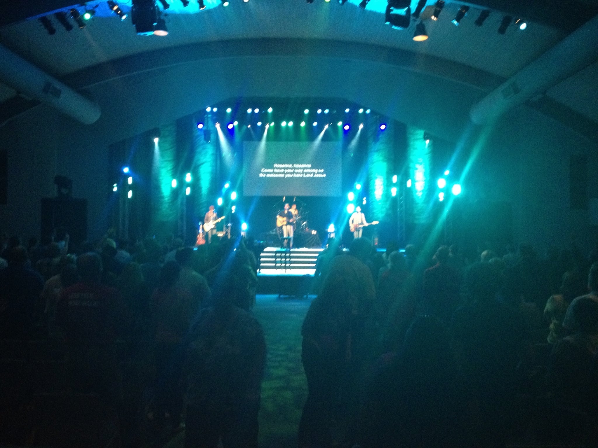 Their paint rags set was built for the 2012 Youth Specialties conference at Northland. Their goal was to create a set that could look great when lit, but disappear when they wanted to rely on their lighting setup. They were really inspired by the similar weed block sets from Cameron Ware and Derek Studt. They wanted something with a bit more texture though, so they decided to use multiple colors of paint. Another goal was to make this set quickly. The method they used, though, was almost completely the opposite of quick.