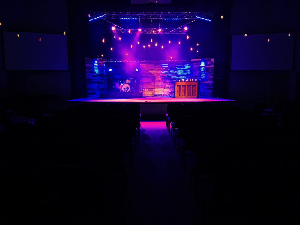 From Jordan: This winter we wanted a very simple and warm stage design using wood and Edison bulbs. We are using this design from November through February. So we rolled it out in 3 phases. During November we had just the pallet wall and piano on stage. In December we added the star shaped paper lanterns to give the stage a more Christmas / Winter vibe. Then in January we removed the paper lanterns and put the Edison bulbs in their place. This was a relatively cheap and easy design. It is also easily scaled to any size stage.