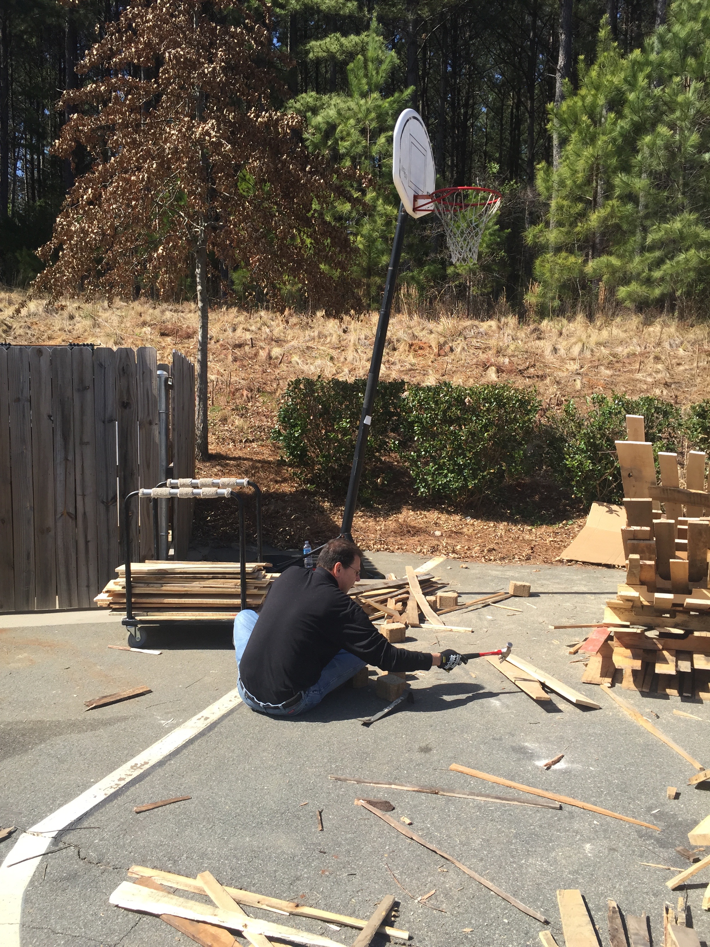This was a big frame made of aluminum angle iron divided into 2’x2′ squares and covered with 1″x 2″ furring strip boards painted black.