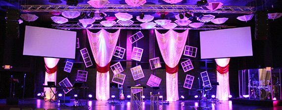 Joey Riggins from Lighthouse Church in Panama City Beach, FL brings us this combination of window panes, umbrellas, and fabric.