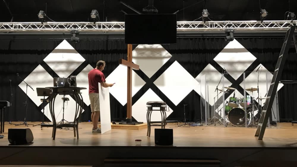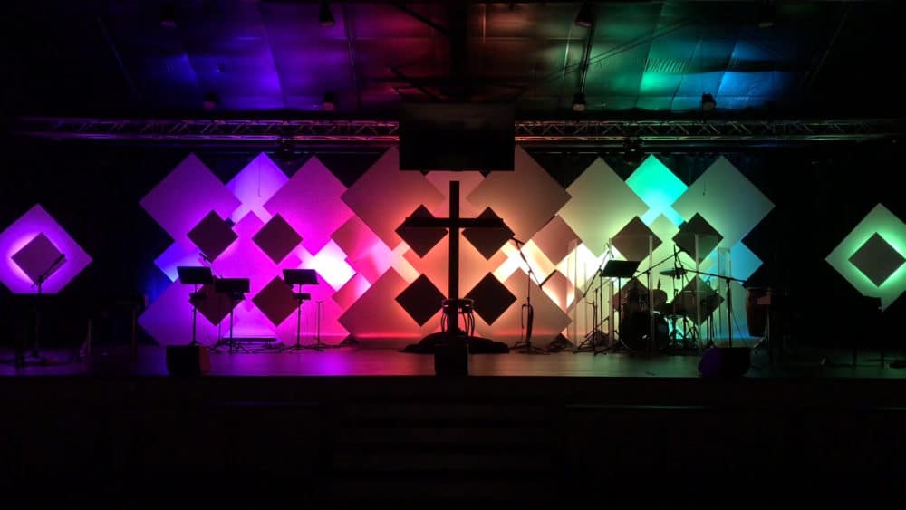 I love an excellent and simple stage design for church like this.