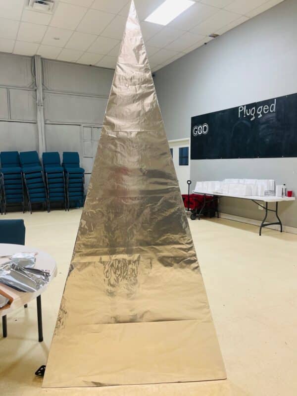 David Solórzano from Calvary Chapel Sun City in El Paso, TX brings us these cool foil-strip Christmas trees.