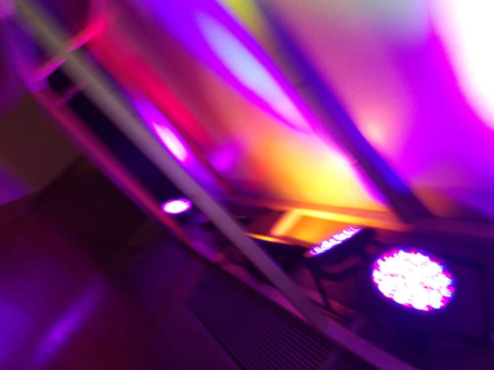Finally we placed the wash lights behind the letters, pointing them so that the colors overlap.