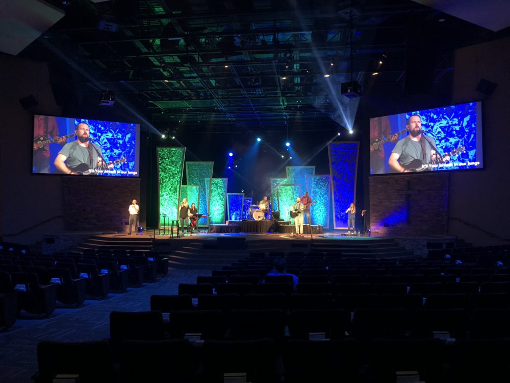 This set was up for the summer and was the backdrop for a lot of different events. Thus, it needed to be generic but work for kids ministry to weekend services.
