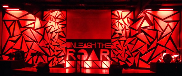 They have annual youth conference called “Unleash The Roar.” They wanted to present an idea of breaking through a wall. Their idea was to make it look more as if they punched the center of a wall, so they designed smaller triangles leading to bigger triangles.