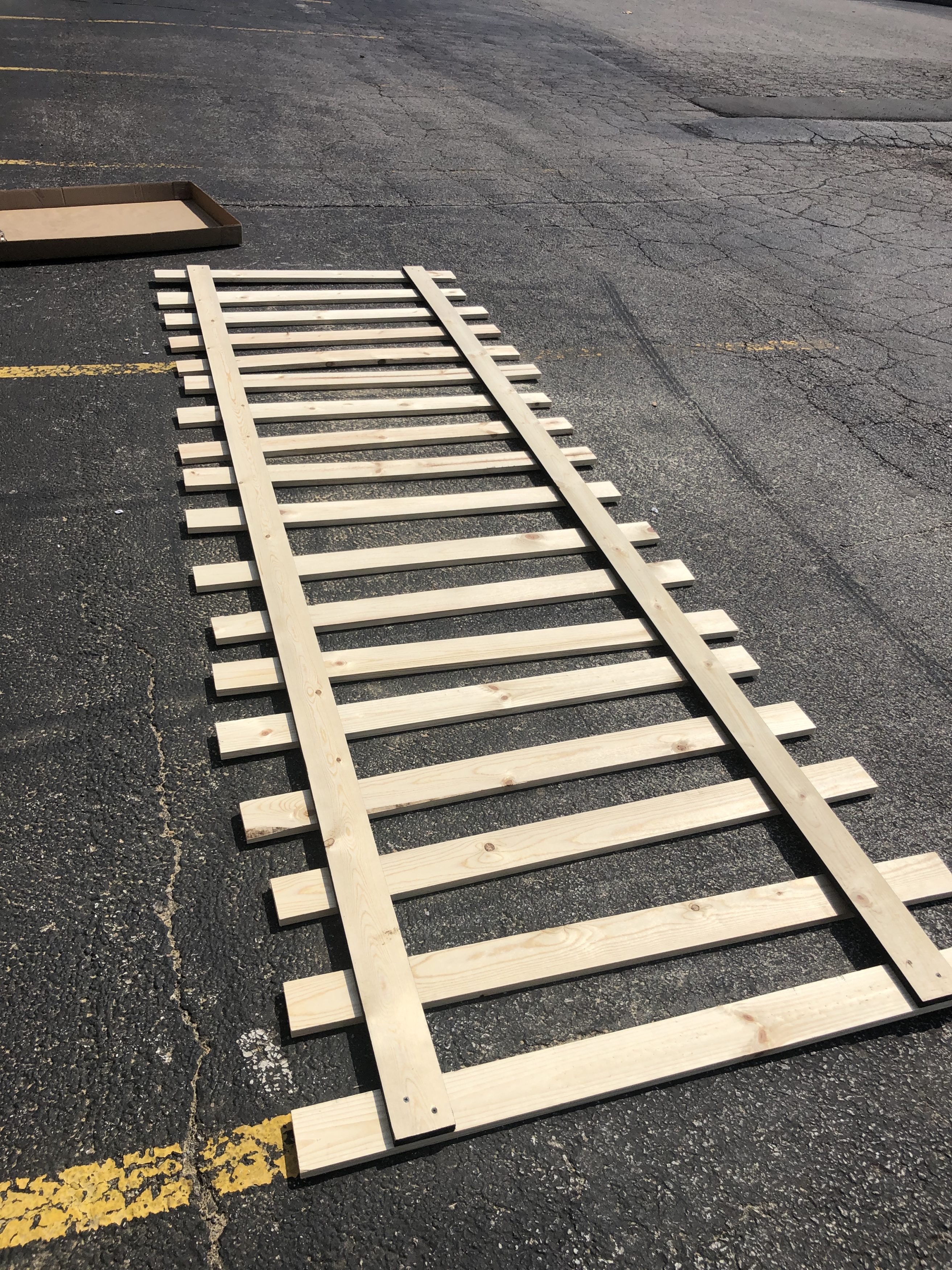 For the slats I pained the vertical pieces of wood black and then screwed on the horizontal pieces to it and just left them natural wood color.