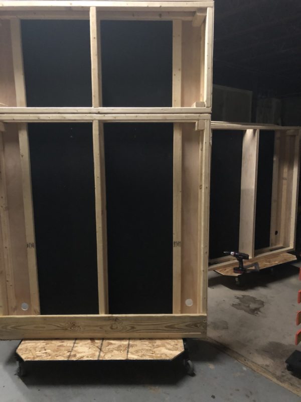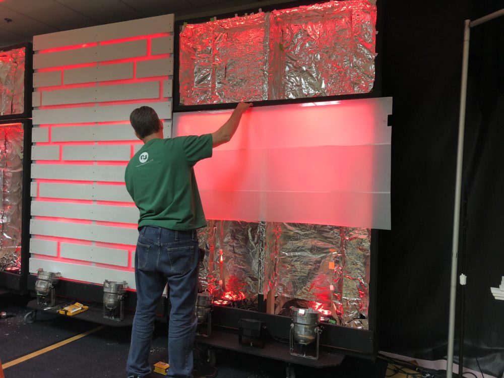 They built frames that would house 2 par cans each. They built a separation down the middle, lined them with tinfoil to help the light reflect as much as possible throughout the enclosure, and put natural Coroplast (not white and not clear) on the front to diffuse the light well.