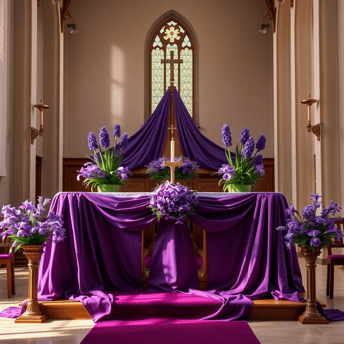 These three colors work together to create a cohesive decorative scheme. You can adjust the balance between them based on your church’s specific needs – use more purple for formal services, emphasize white for celebration moments, or incorporate gold accents throughout for consistent elegance.