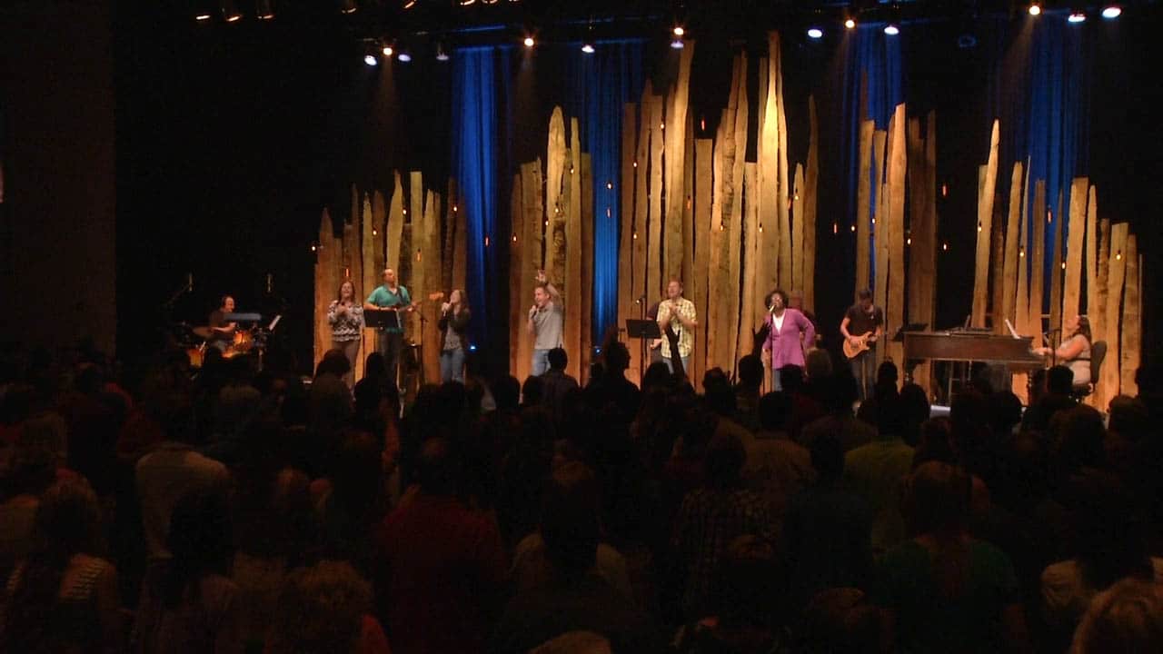 They all liked the idea of using elements that would create a warm feeling as this design took place in the fall/winter of 2013. The volunteer’s idea was to somehow incorporate slabwood. Slabwood is the excess material cut from outer edge of a tree at the sawmill. Once a tree has been de-barked, they begin milling it into a usable shape leaving behind a slab, flat on one side, rounded on the other. It’s typically sent to the chipper as waste, made into mulch, or could be sold as a biofuel if there is a large enough quantity. At any rate, one of the men at Blue Ridge Community Church has been a long time sawmill designer and technician on the East Coast and connected them with a mill about an hour away who was interested in what they wanted to do and was willing to pull a stack of 12-20′ pieces of slabwood in order for them to attempt to create a stage design. Fortunately, the mill was working with mixed hardwoods such as oak, hickory, walnut, and other attractive species.