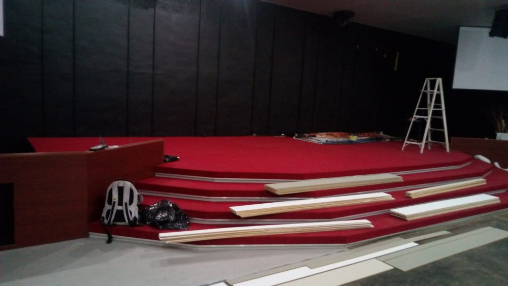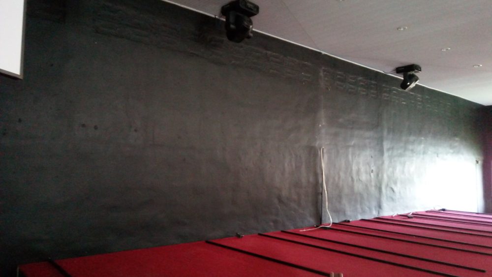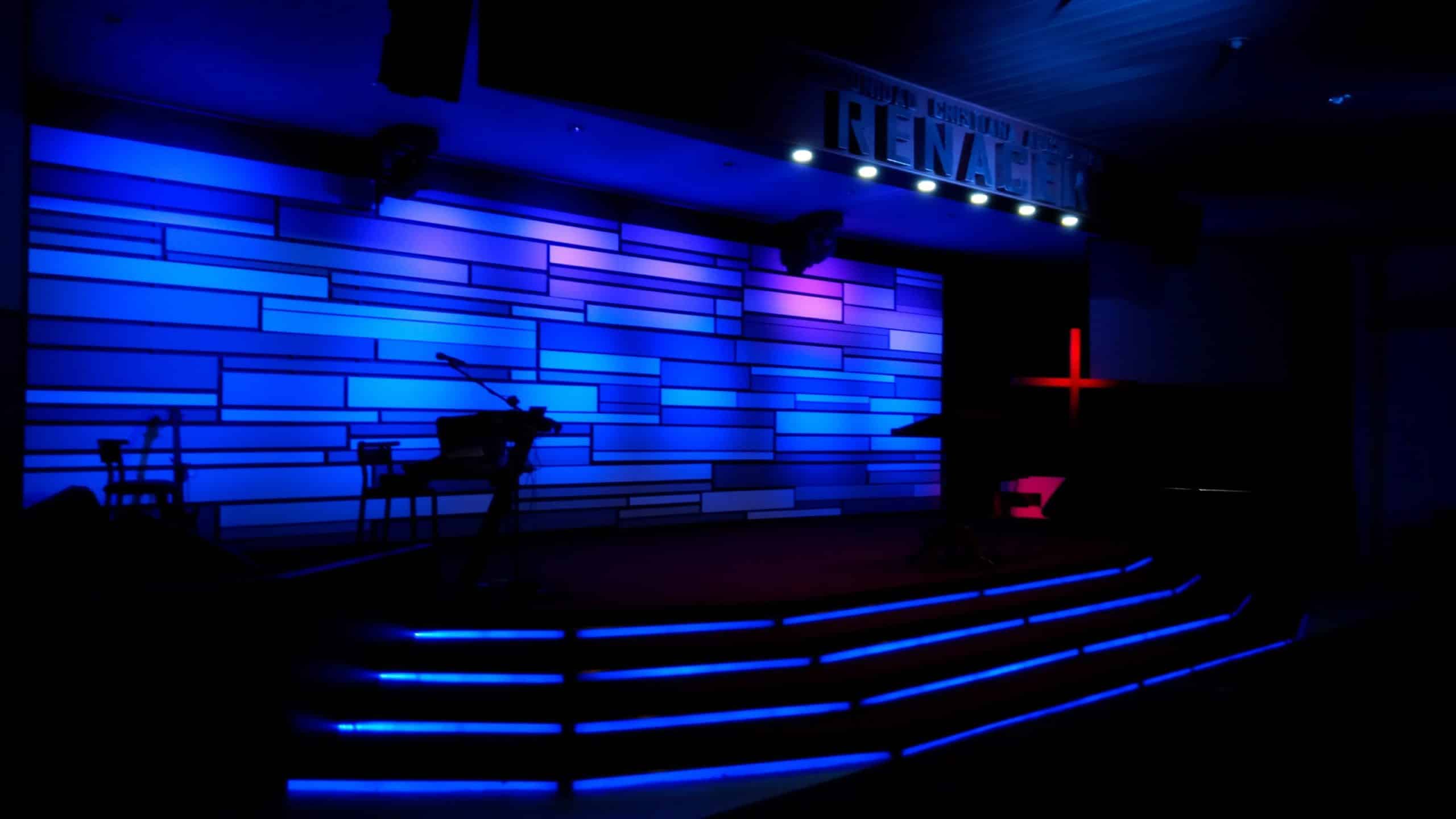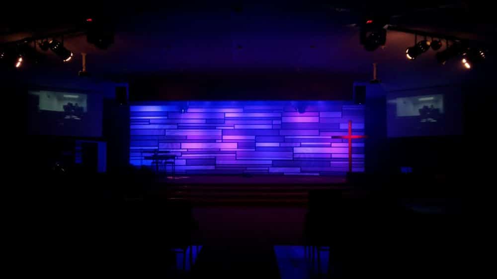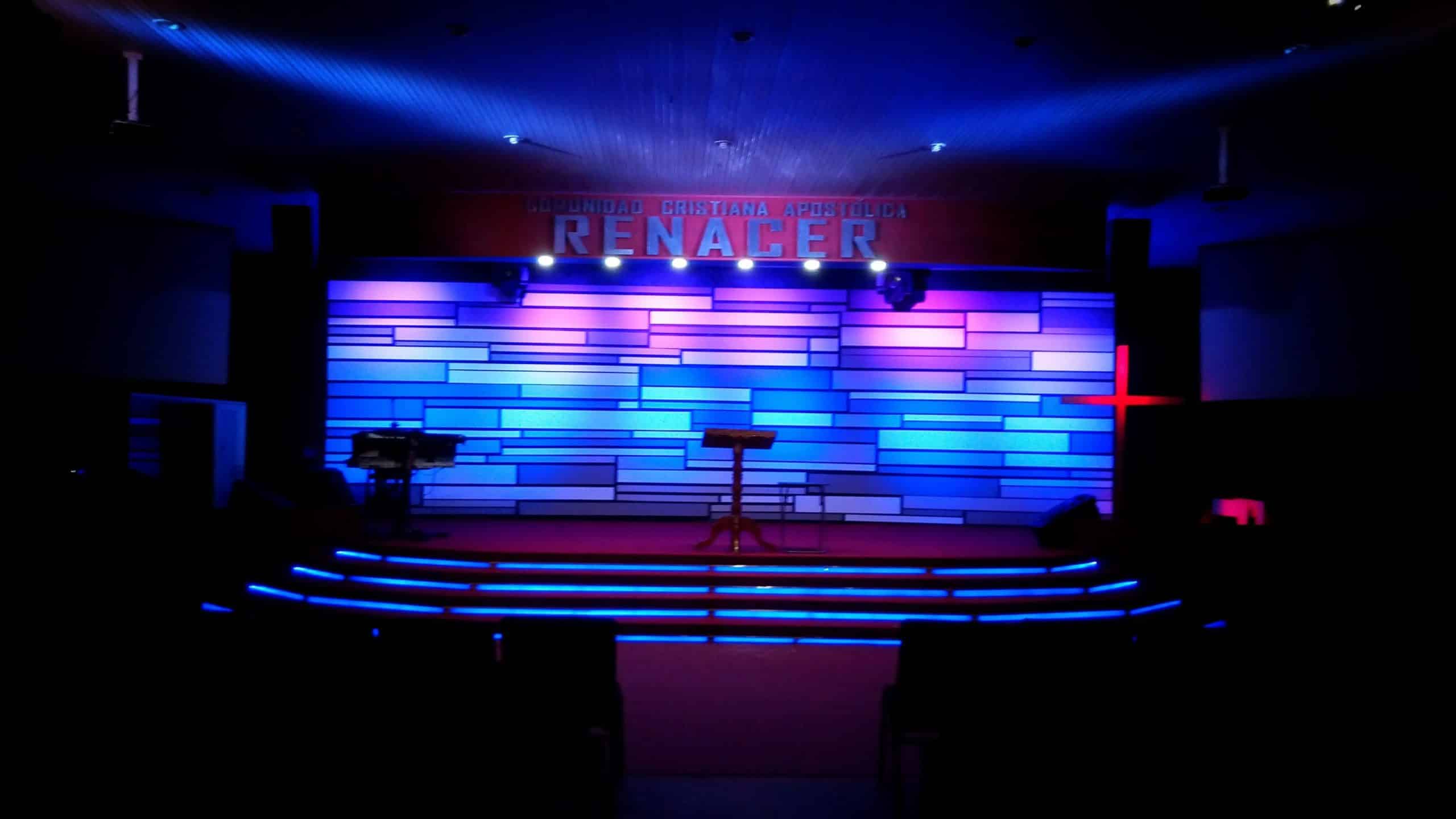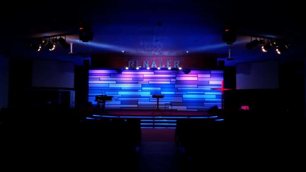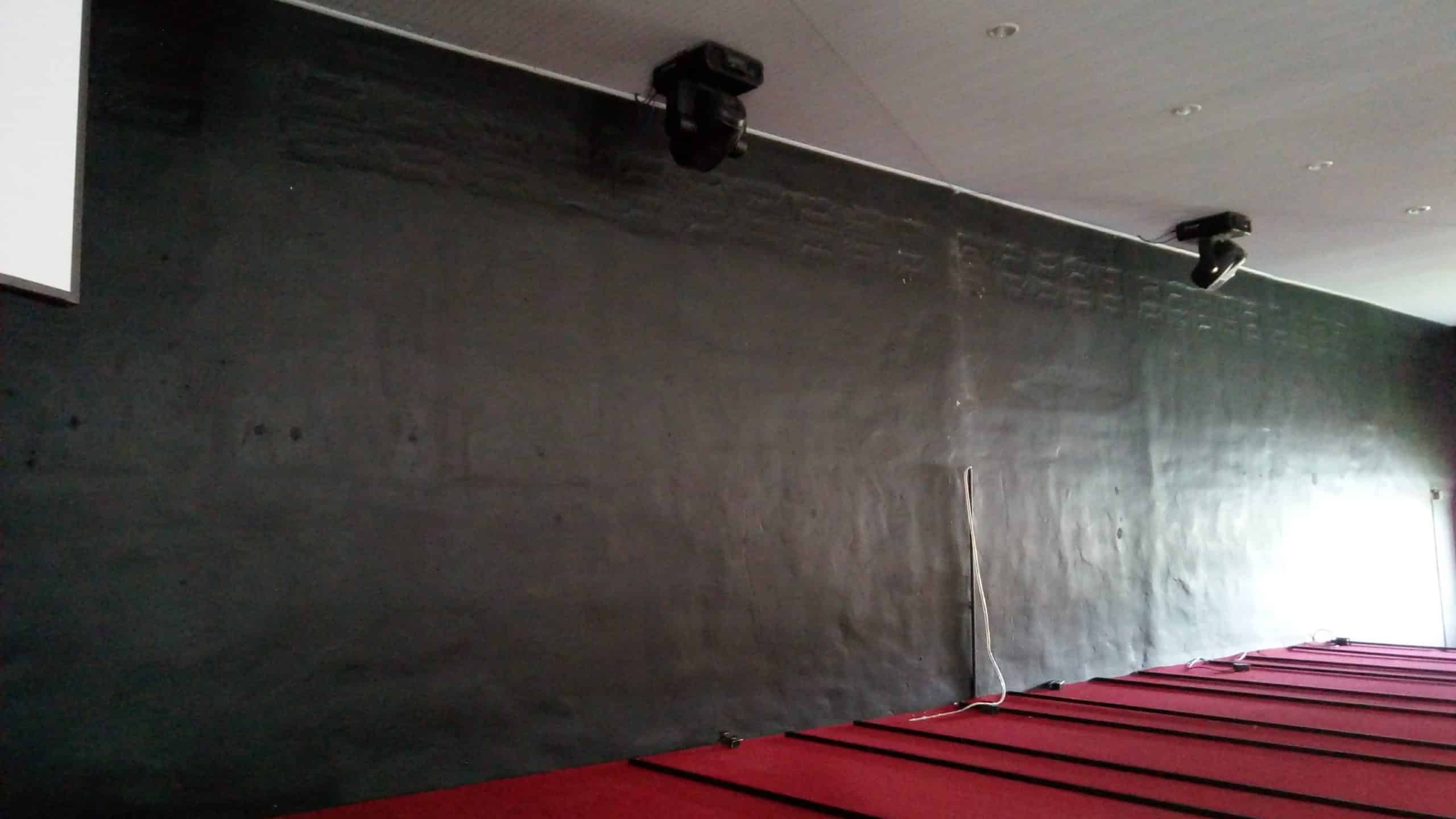 They lit the wall with LED lighting controlled by DMX, just like the LED tape they used on the stairs.