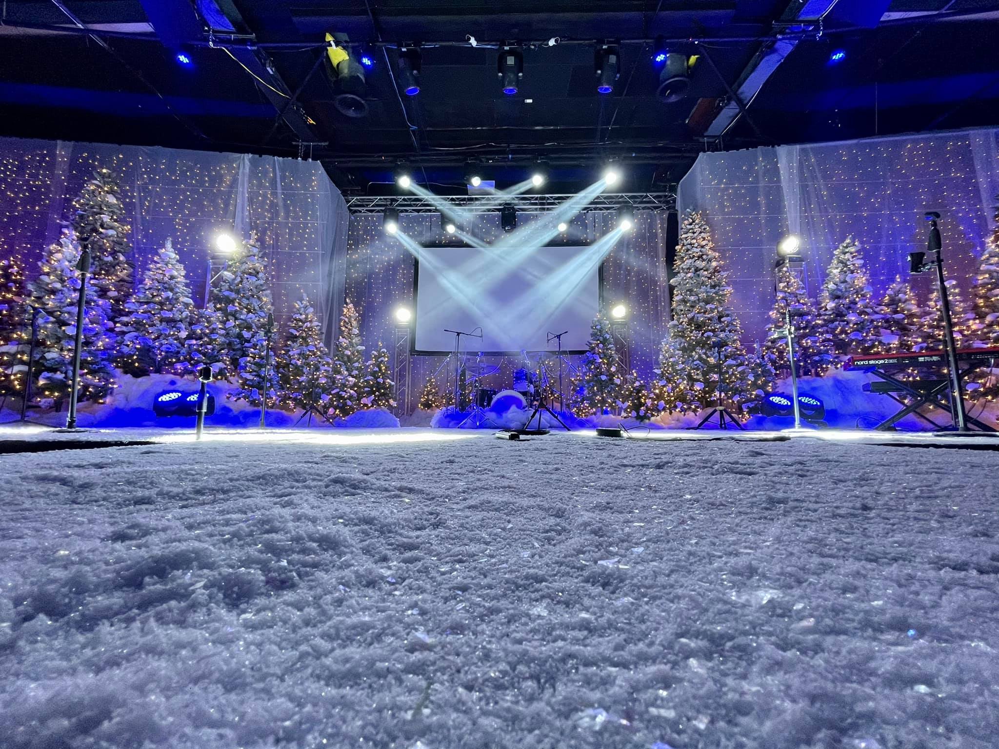 They poured three different types of fake snow all over their stage: